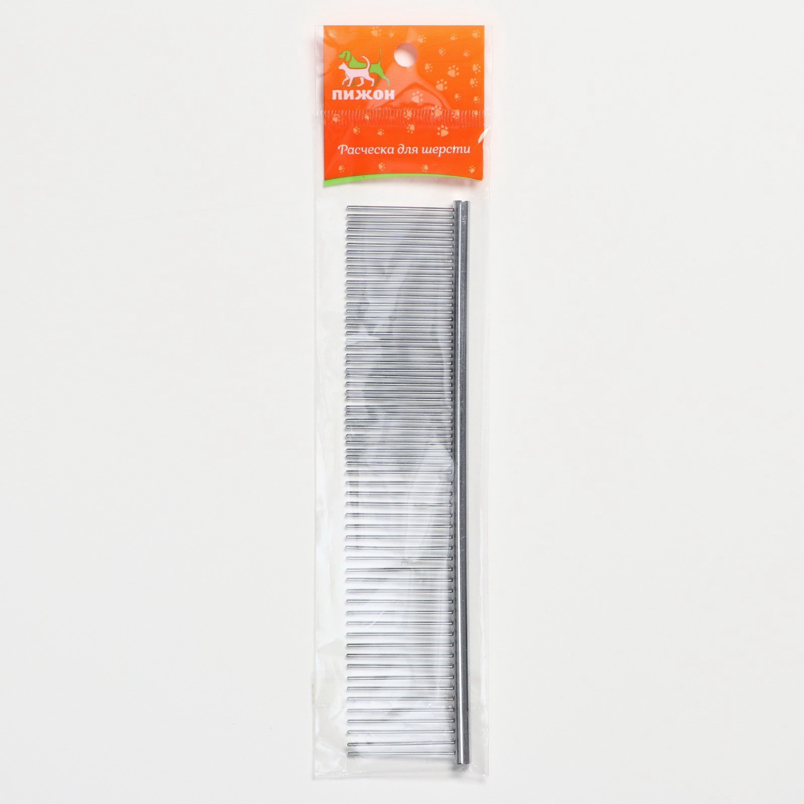 Расчёска для шерсти средняя, 19x4 см, редкие и частые зубья, металл, 4x19x0.6 см., Пижон, Китай