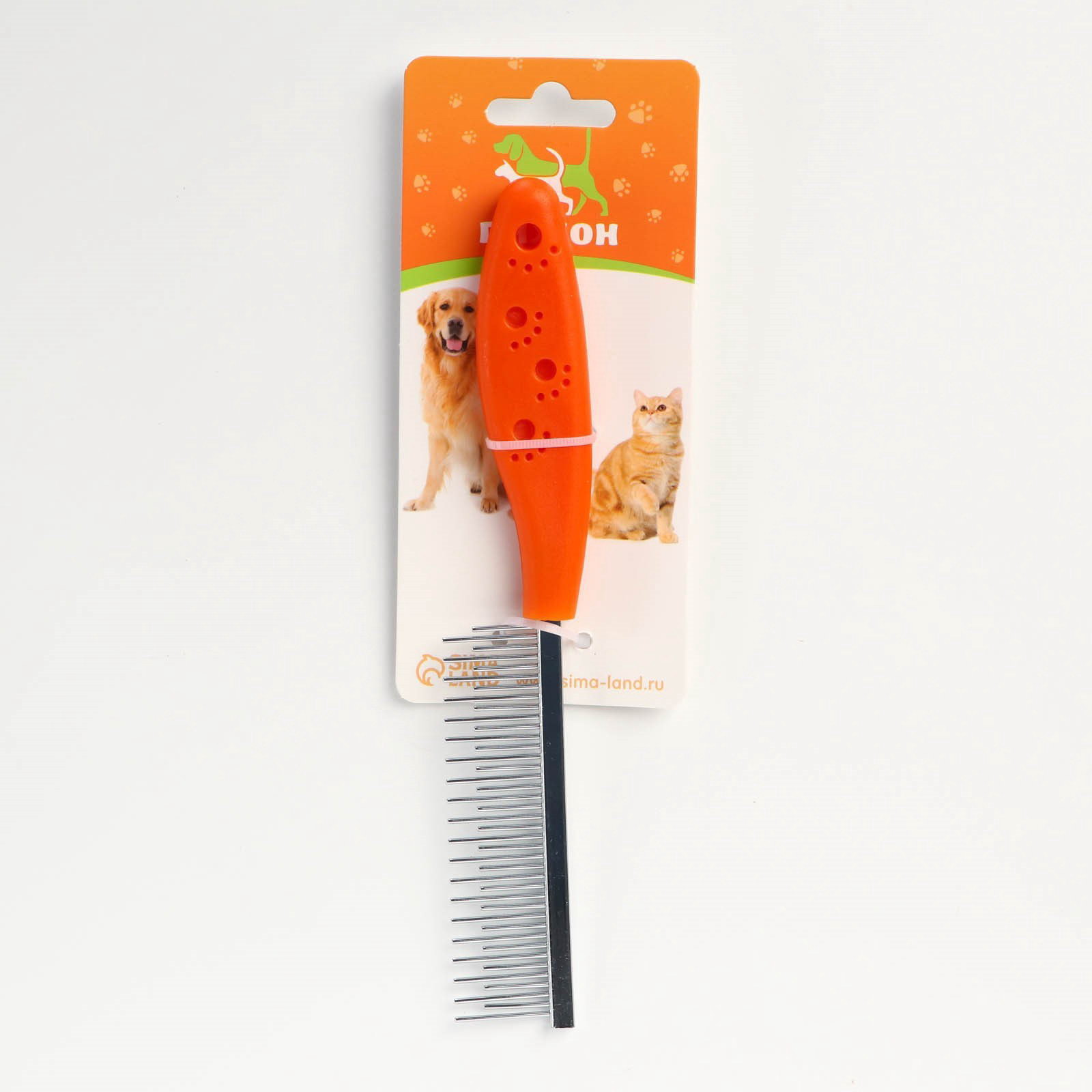 Расчёска для шерсти "Лапки", 20.5x3 см, с зубьями разной длины, оранжевая, 3x20.5 см., Пижон, Китай