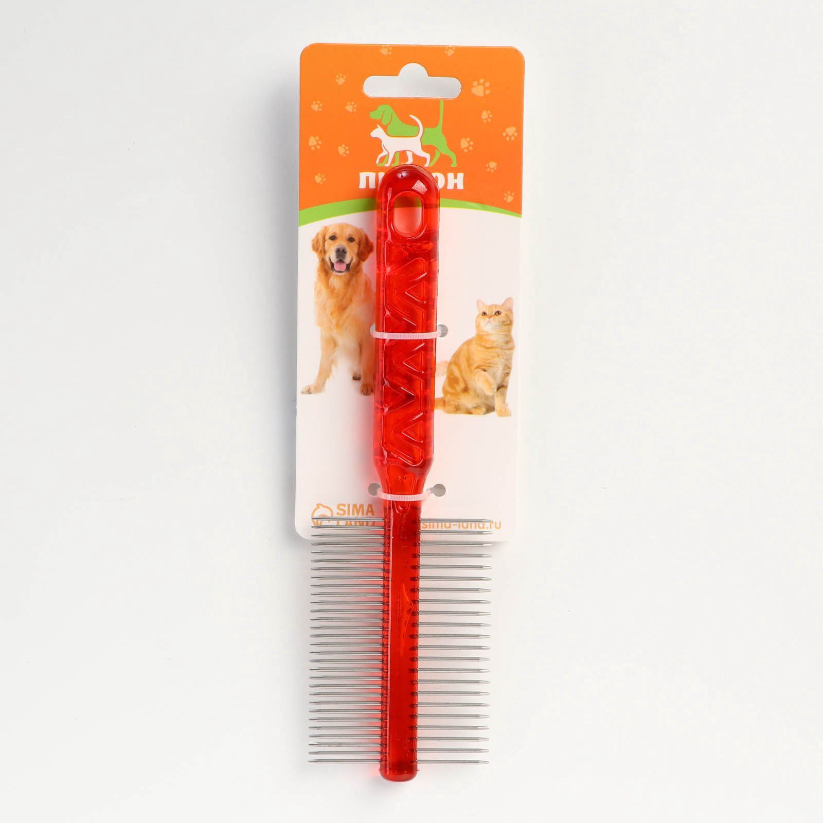 Частота зубьев: Редкий, Частый Размер упаковки: 5.5 x 2 x 19 см. tnved: 9615190000 Расческа , подходит для животных с длинной прямой шерстью. Ключевые особенности: Для длинной густой шерсти. Две стороны с разной частотой зубьев. Тщательно прочесывает шерсть. Удаляет пыль и грязь. Обладает массажным эффектом. Удобная ручка. Не травмирует кожу животного. Для ежедневного использования. При выборе расчески необходимо учитывать длину и густоту шерсти Вашего питомца. Расческа предназначена для тщательного ухода за шерстью кошек и собак. Она легко удаляет частички пыли и грязи с шерсти животного, не повреждая поверхность кожи и не травмируя структуру шерсти. С одной стороны расчески частые зубцы, с другой - более редкие, что позволяет с ее помощью ухаживать за шерстью разных животных. Эта расческа прослужит Вам долгое время, так как изготовлена из высококачественных материалов. | ||