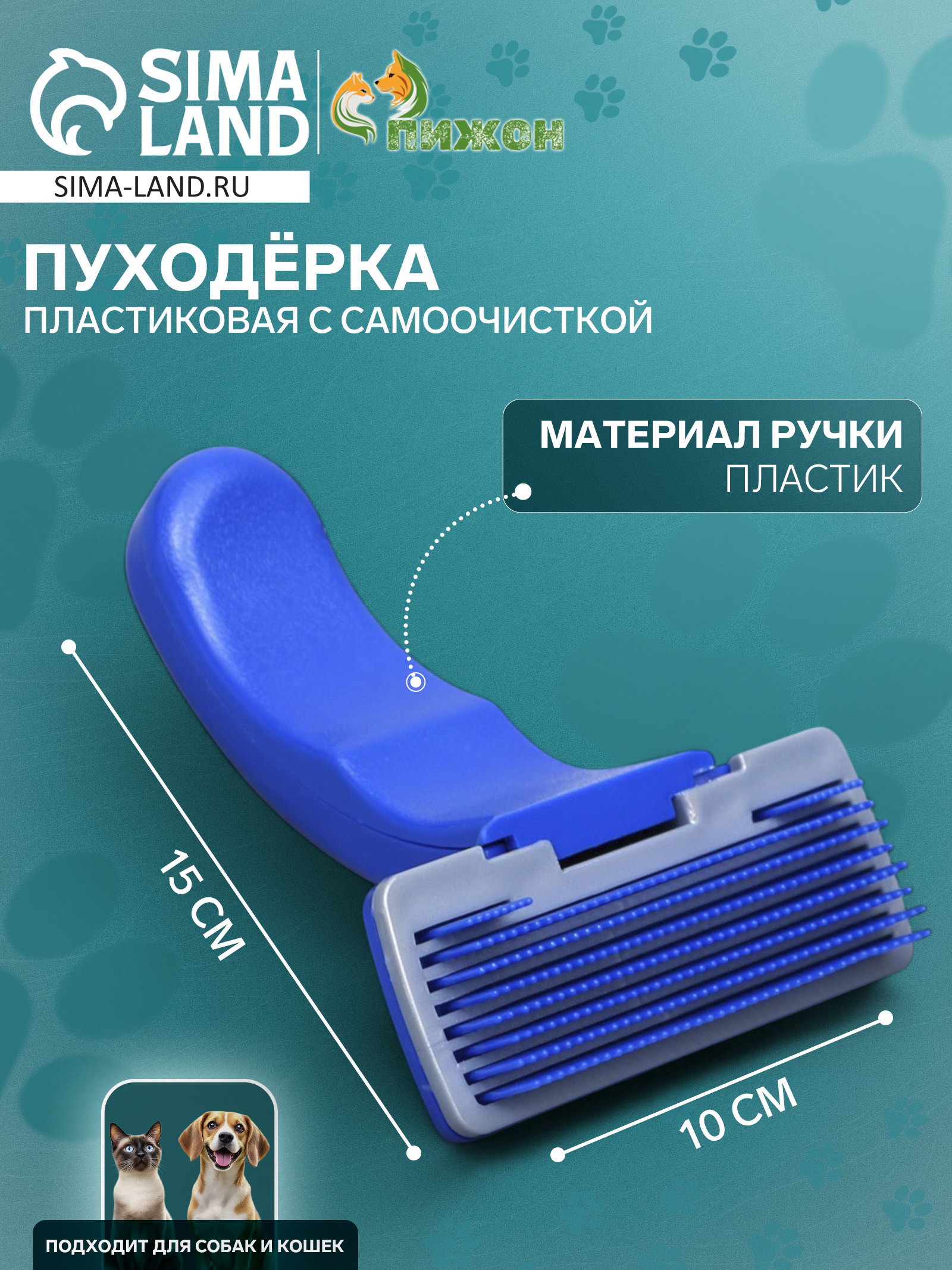 Пуходёрка, 10x15 см, с самоочисткой, пластик, синяя, 10x15x5 см., Пижон, Китай