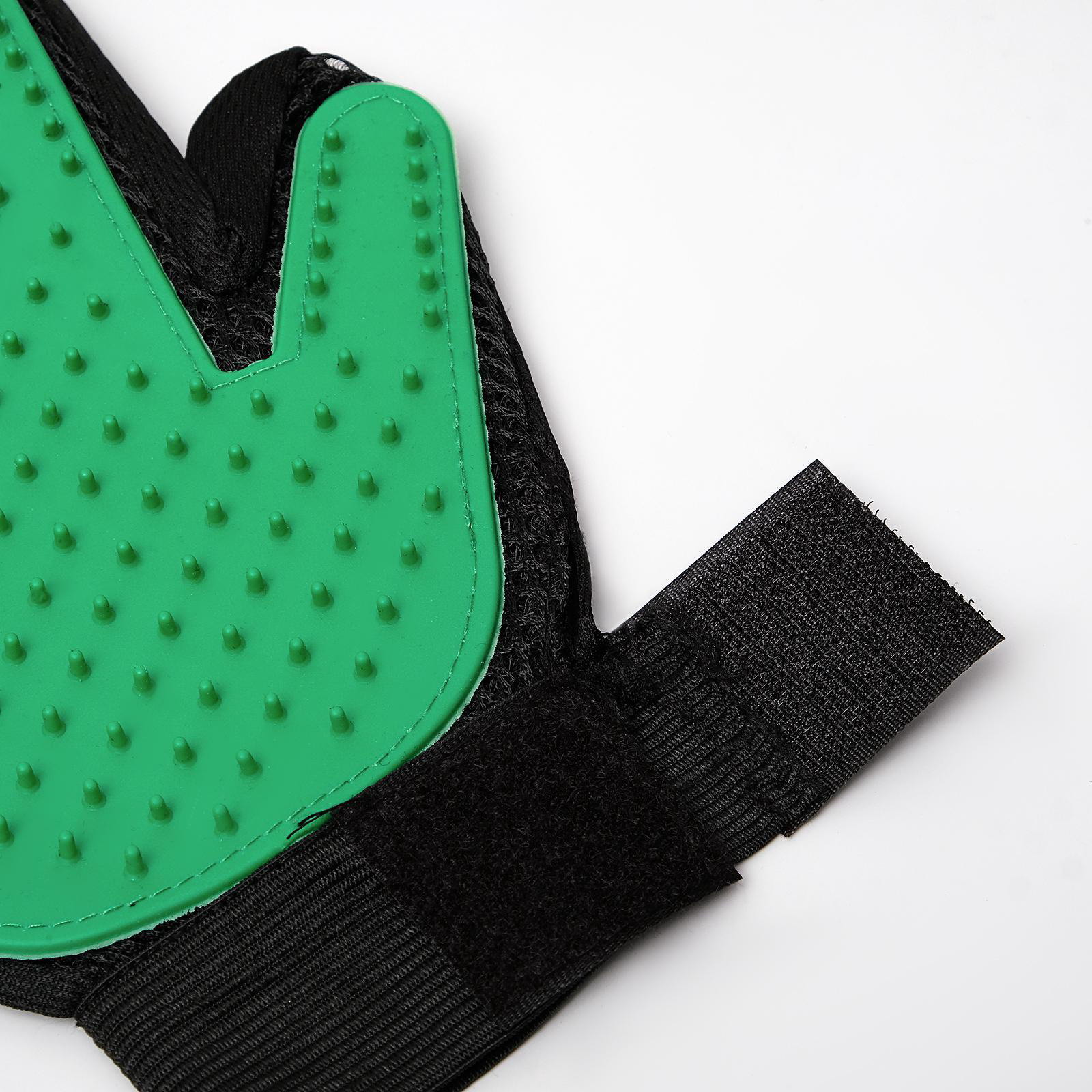 Перчатка - щетка для шерсти на правую руку с удлиненными зубчиками, зелёная, 17.5x24.5x1.5 см., Пижон, Китай