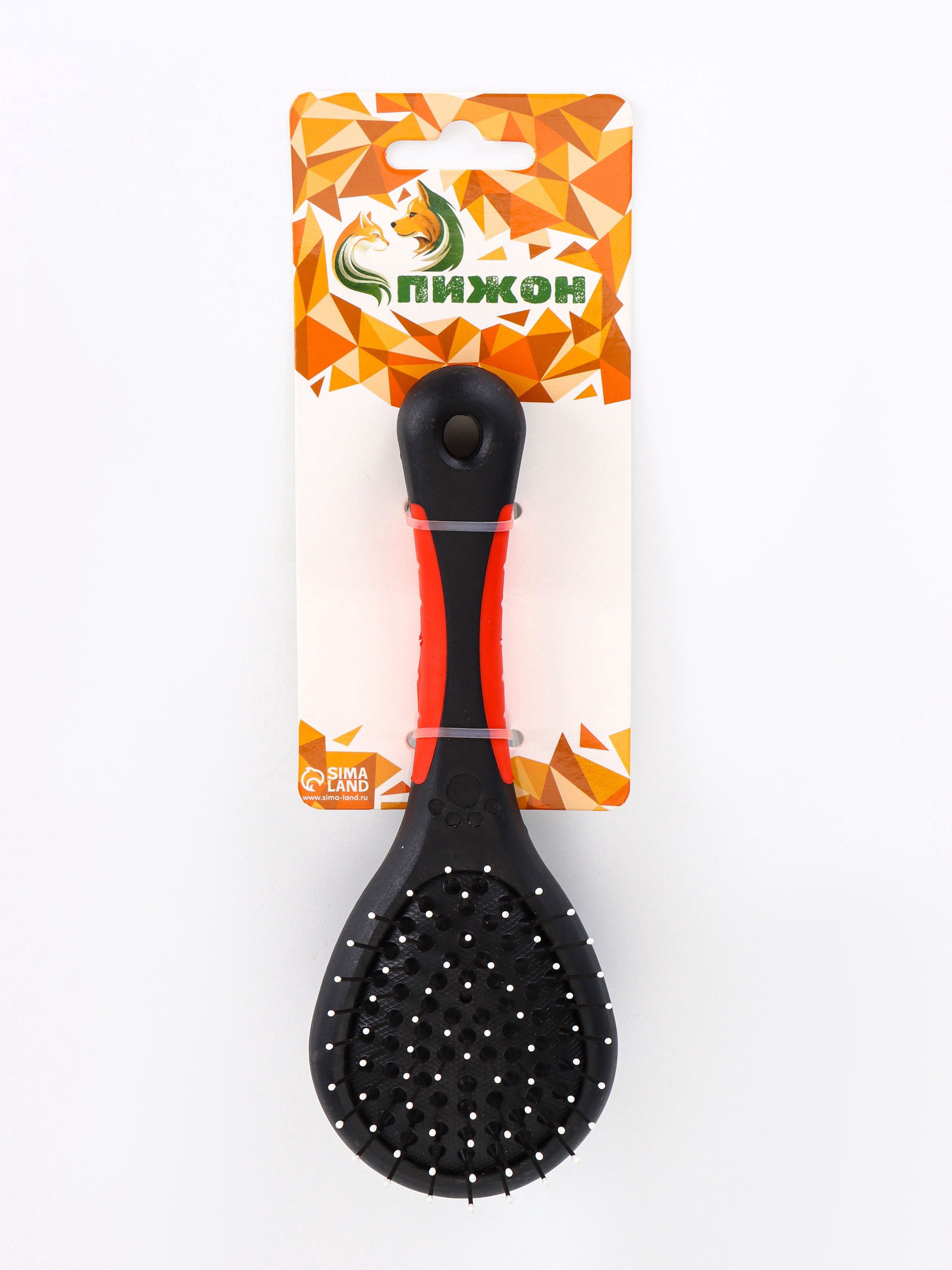 Щётка-расчёска двухсторонняя, 17.5x6.5 см, нескользящая ручка, чёрная, красная, 6.5x17.5 см., Пижон, Китай