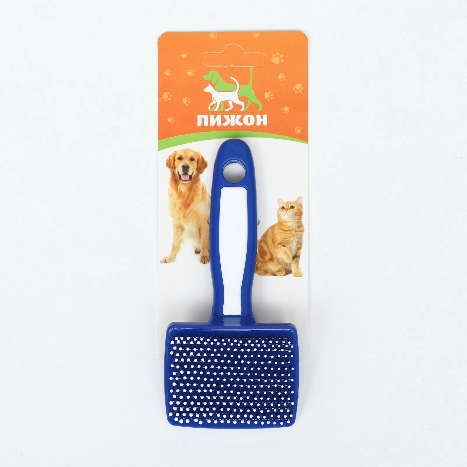 Пуходерка пластиковая мягкая с закругленными зубьями, малая, 6x13.5 см, бело-синяя, Пижон, Китай
