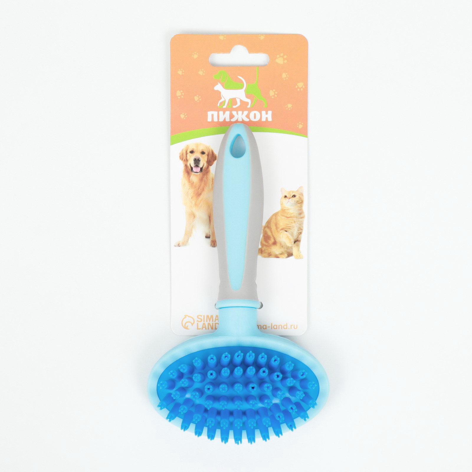 Щётка-массажёр для животных, 9.5x16.5 см, с силиконовыми зубьями, средняя, пластик, голубая, Пижон, Китай