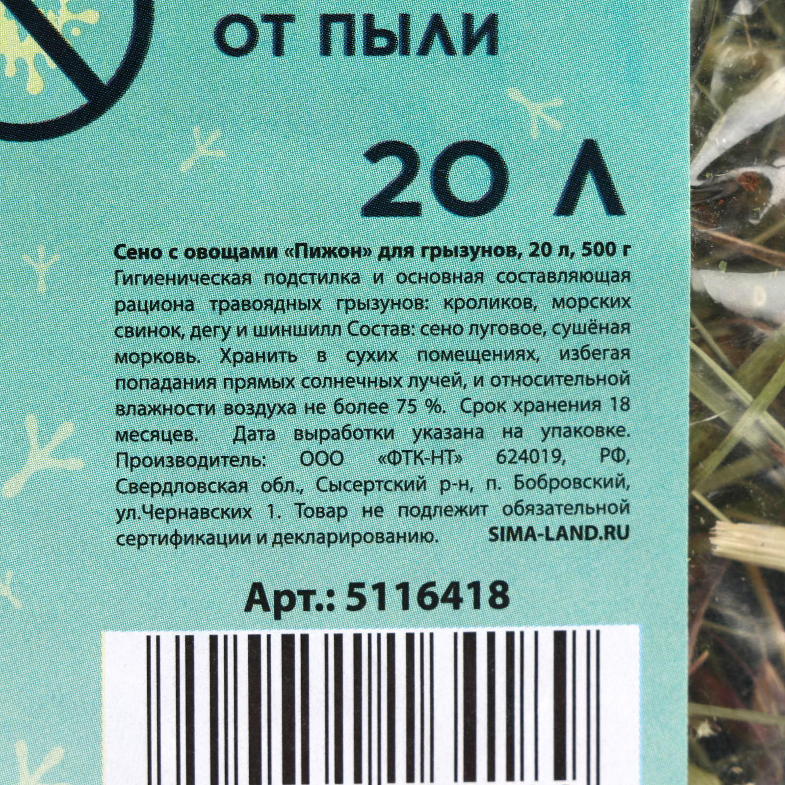 Сено с овощами для грызунов, 20 л, 500 г, 20000 мл., Пижон, Россия
