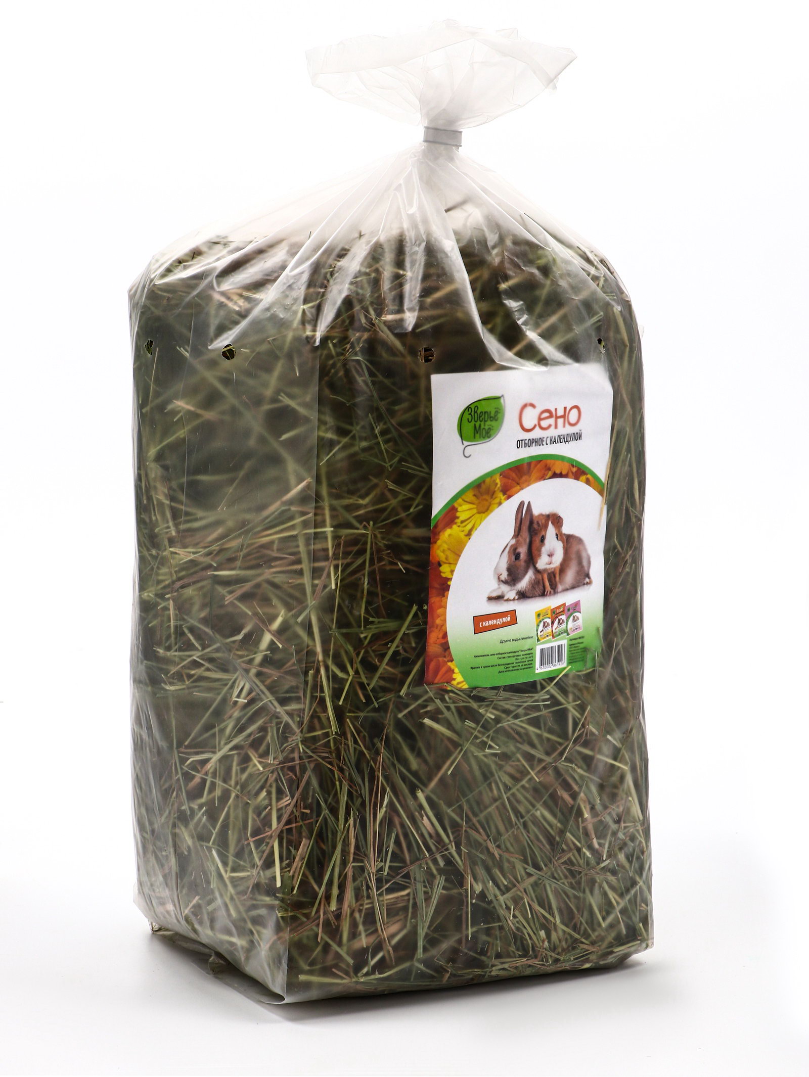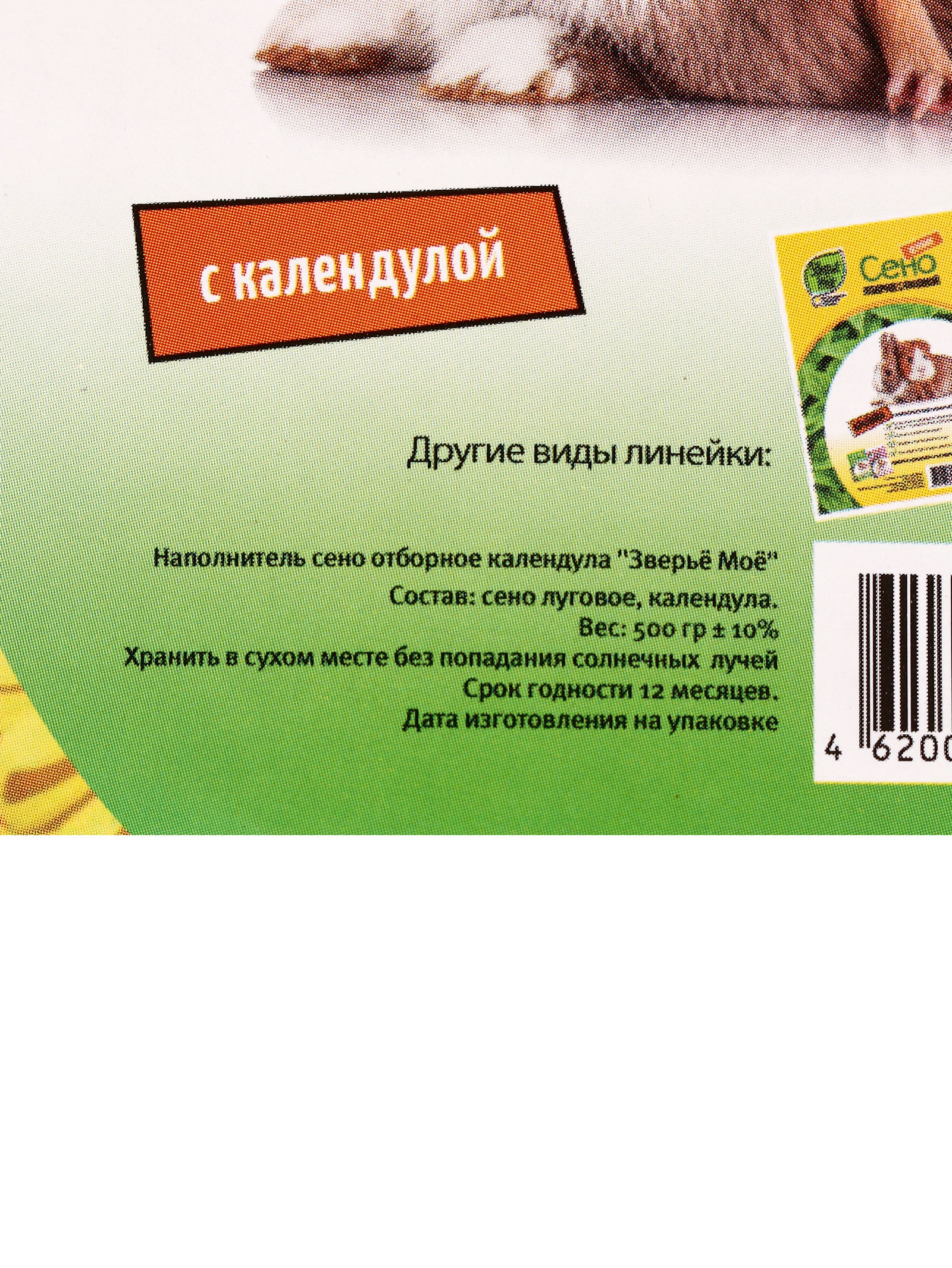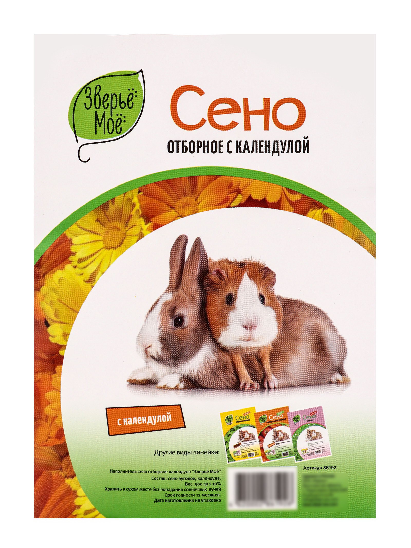 Сено луговое "Зверьё Моё", отборное, ароматное, зеленое, без пыли, календула, 500 г, Зверьё моё, Россия