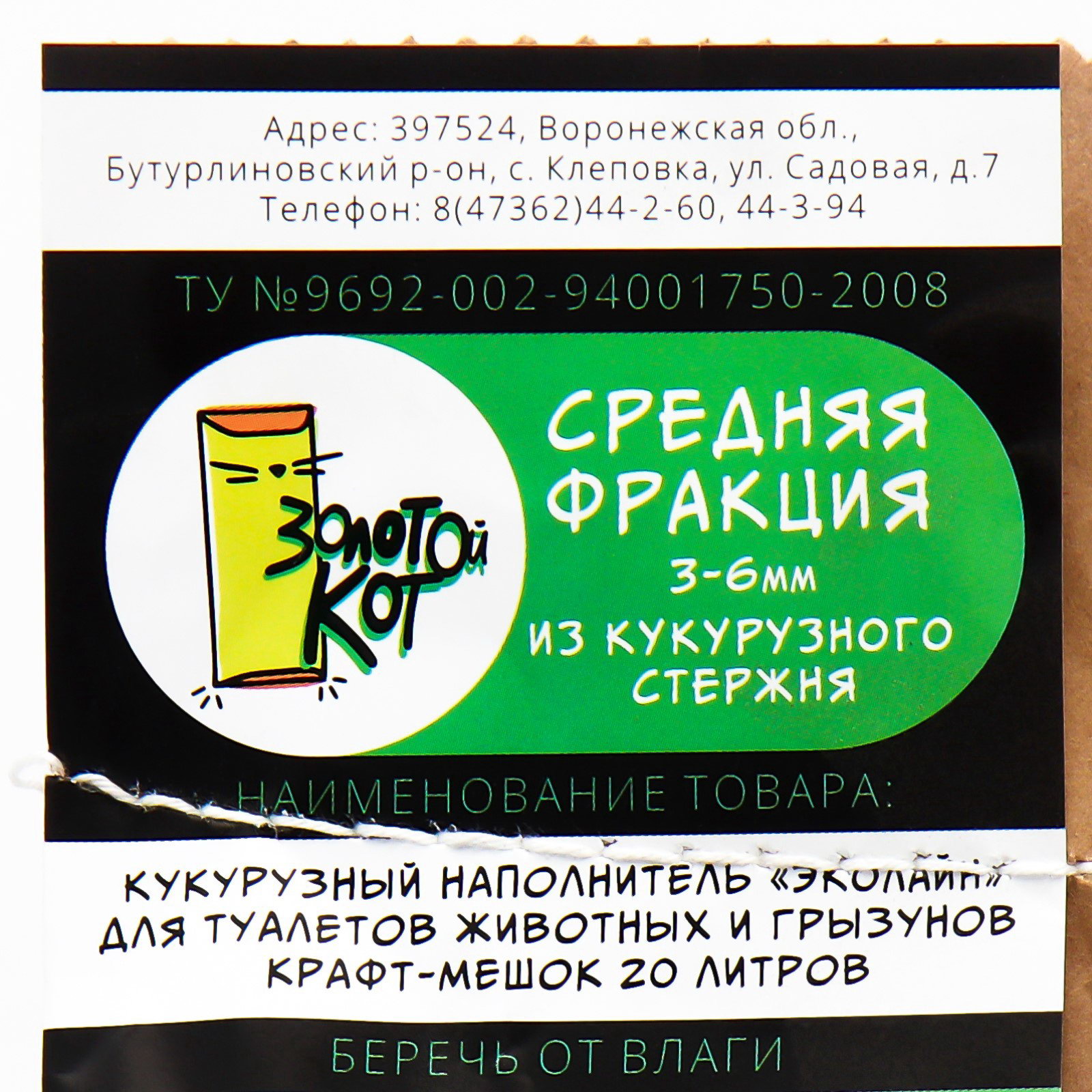 Наполнитель кукурузный для грызунов, 20 л, 20000 мл., Золотой кот, Россия