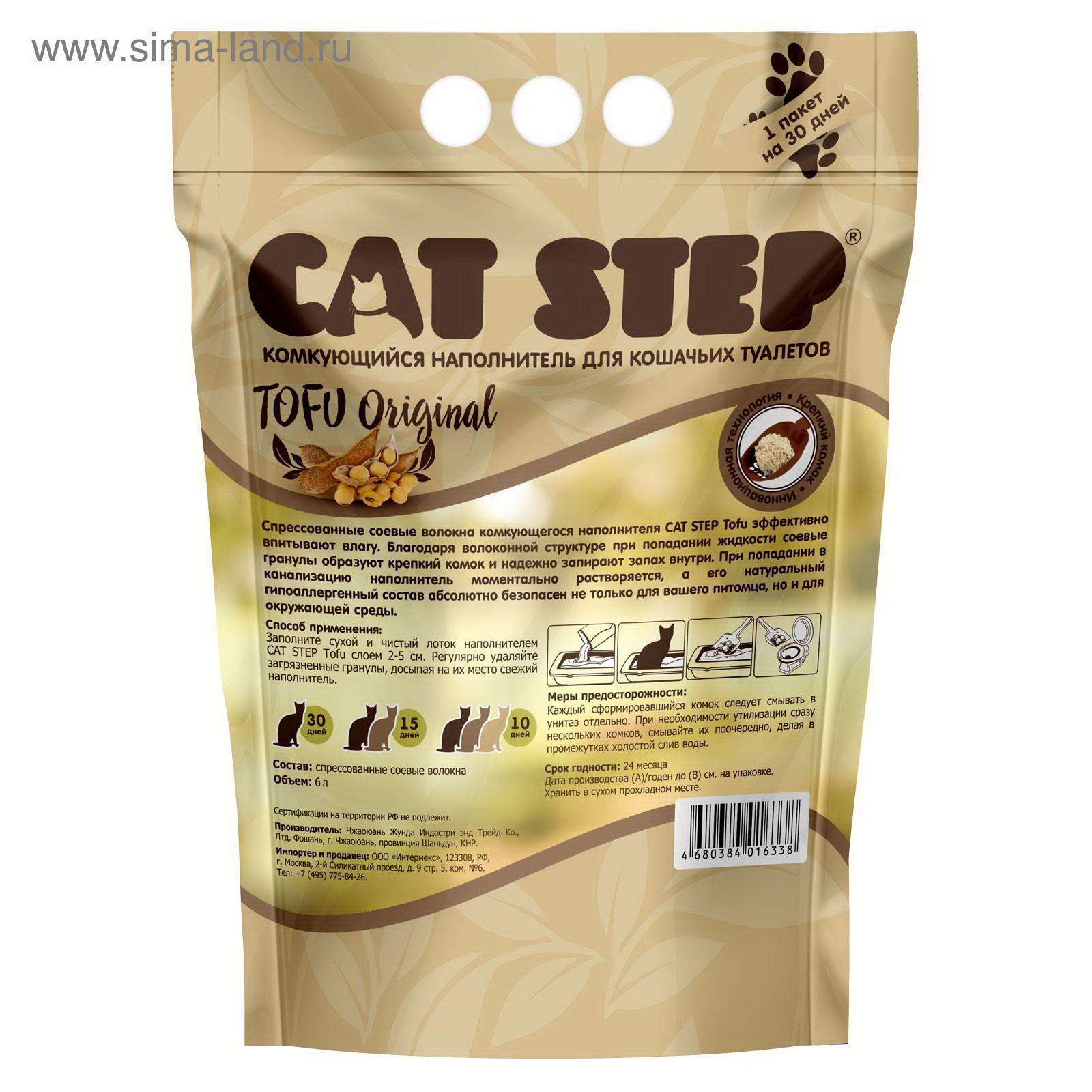 Наполнитель для кошачьих туалетов Tofu Original 6L, растительный комкующийся, 34x42.5x11 см., Cat Step, Китай