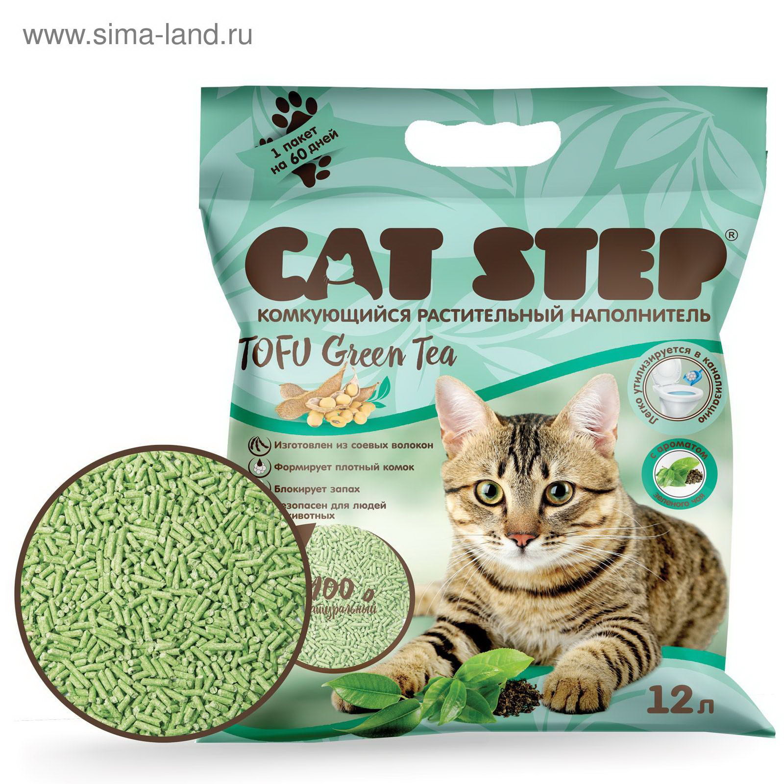 Наполнитель для кошачьих туалетов Tofu Green Tea 12L, растительный комкующийся, 11x40x55.5 см., Cat Step, Китай