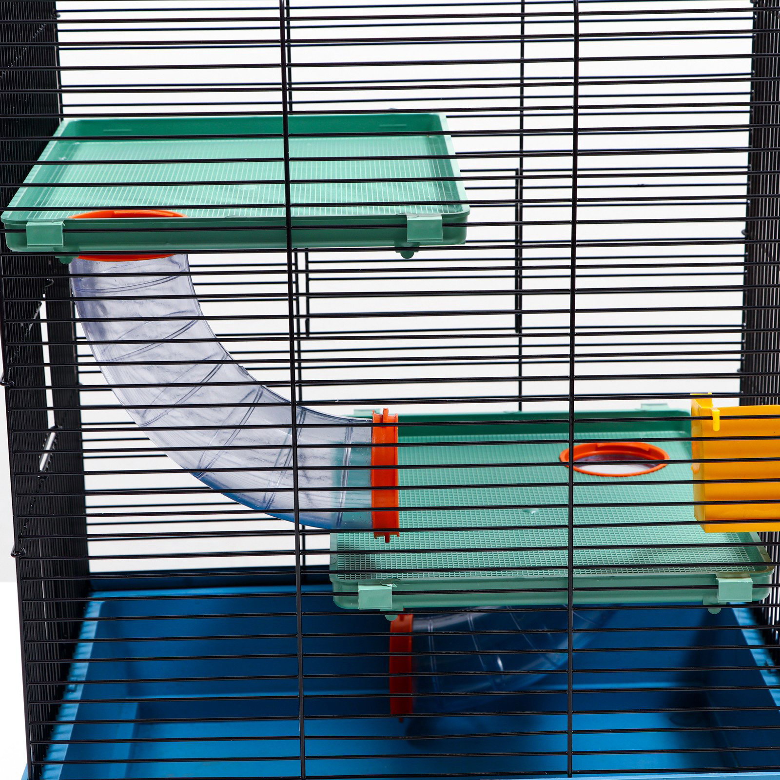 Клетка прямоугольной формы с горизонтальными прутьями – удобный и функциональный дом для любого грызуна: он занимает совсем немного места и отлично подходит для мелких домашних животных вроде крыс, мышей и хомяков. Комплектация: