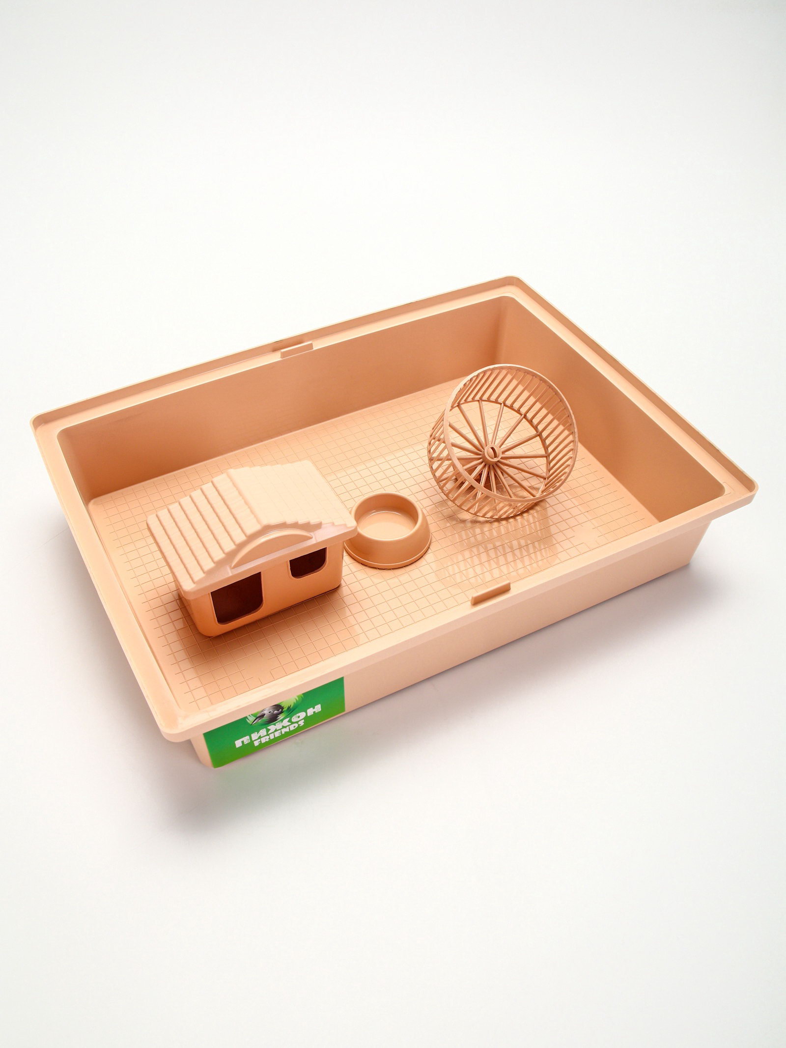 Клетка для грызунов 38x27x27 см, складная, домик, миска, колесо, бежевая, Пижон, Россия