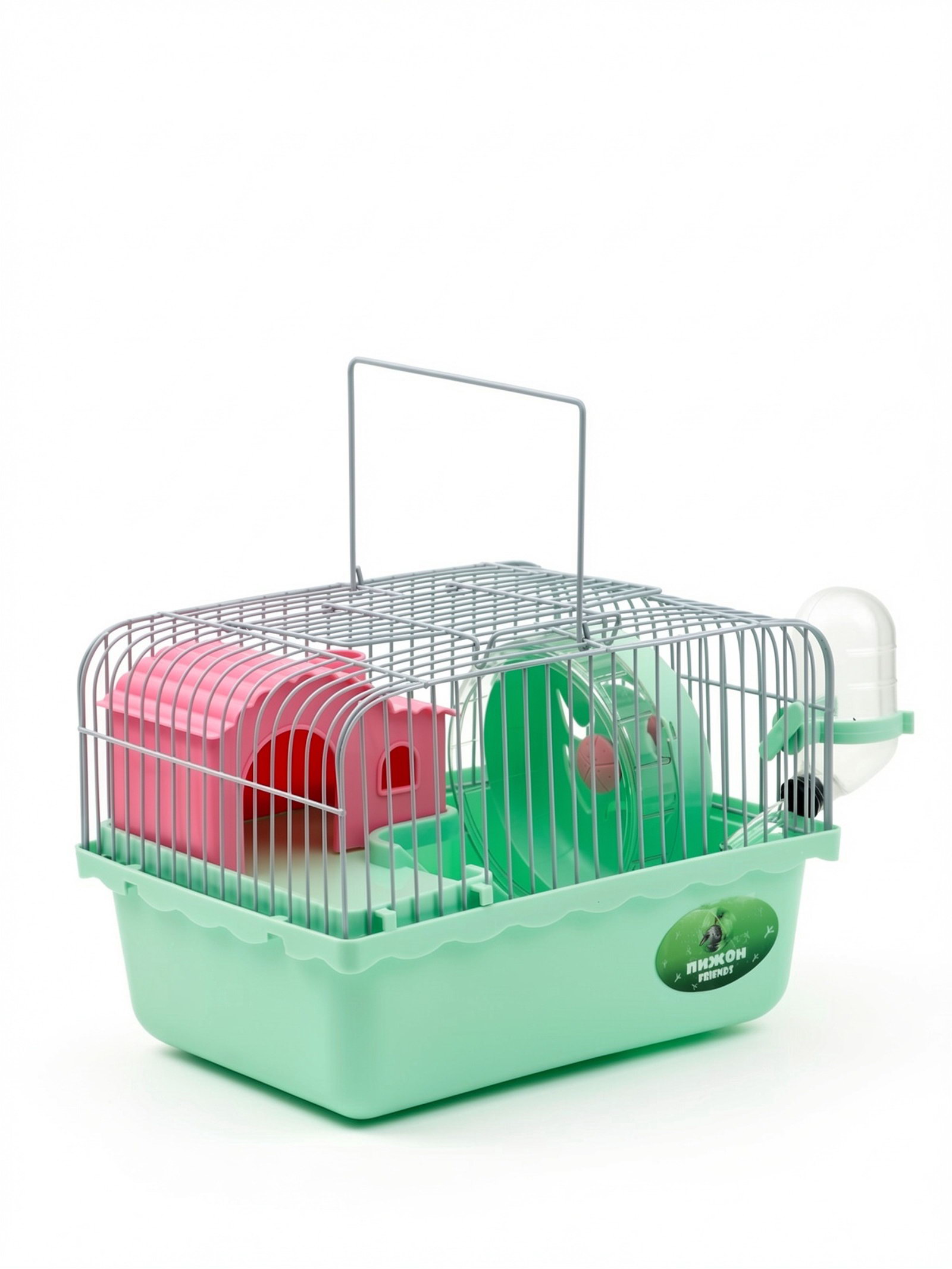 Клетка для грызунов 23x17x15 см, с наполнением, зеленая, 21x23x15 см., Пижон, Китай