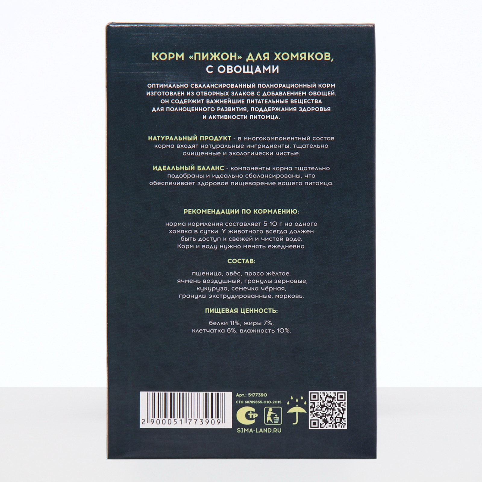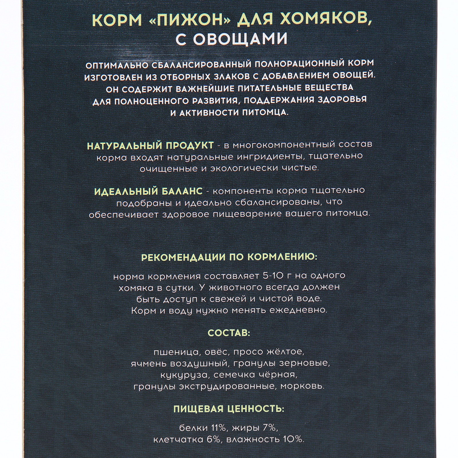 Корм для хомяков, с овощами, 400 г, Пижон, Россия
