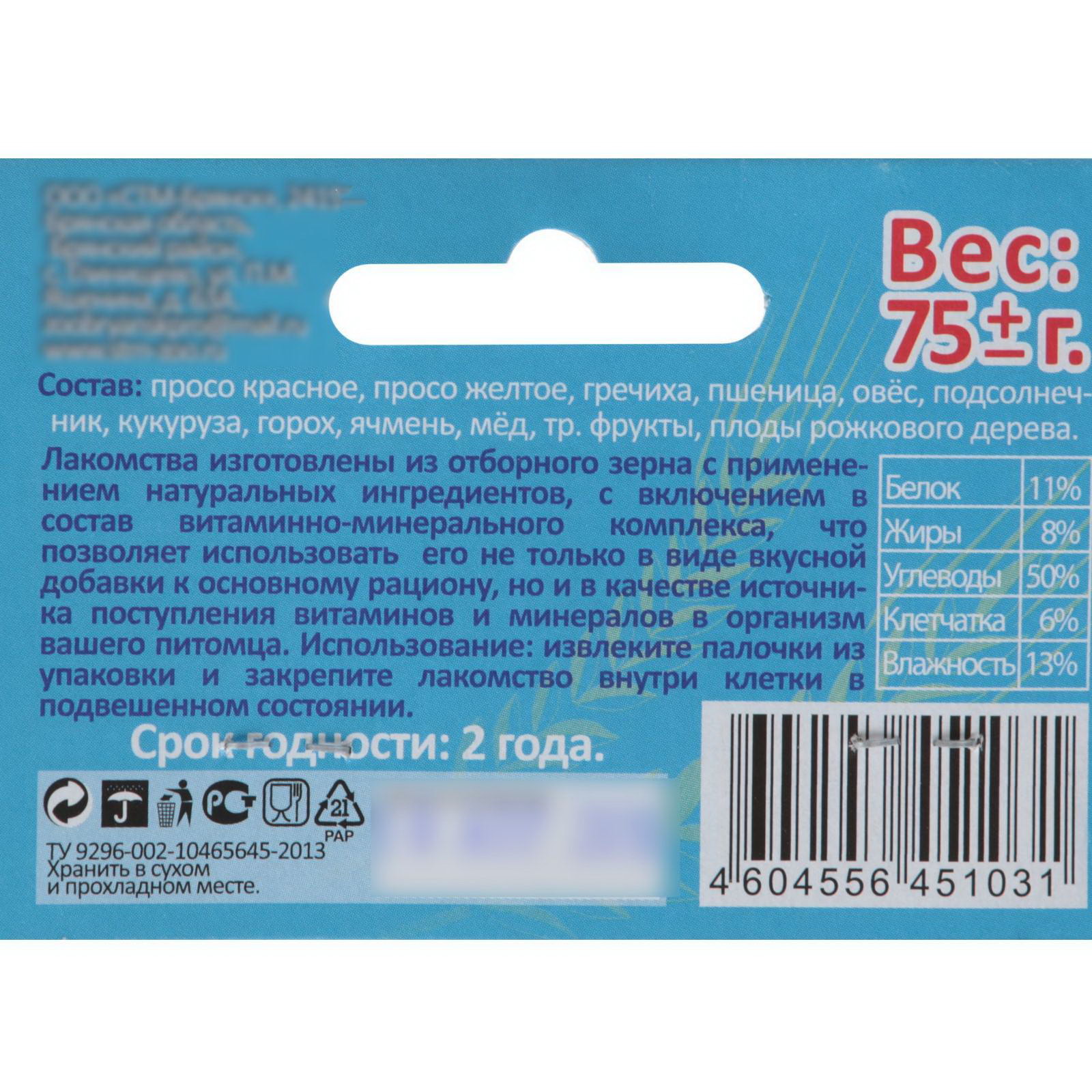 Палочки Эконом для грызунов, тропические фрукты/мёд/рожковое дерево, 3 шт., 75 г, Seven Seeds, Россия