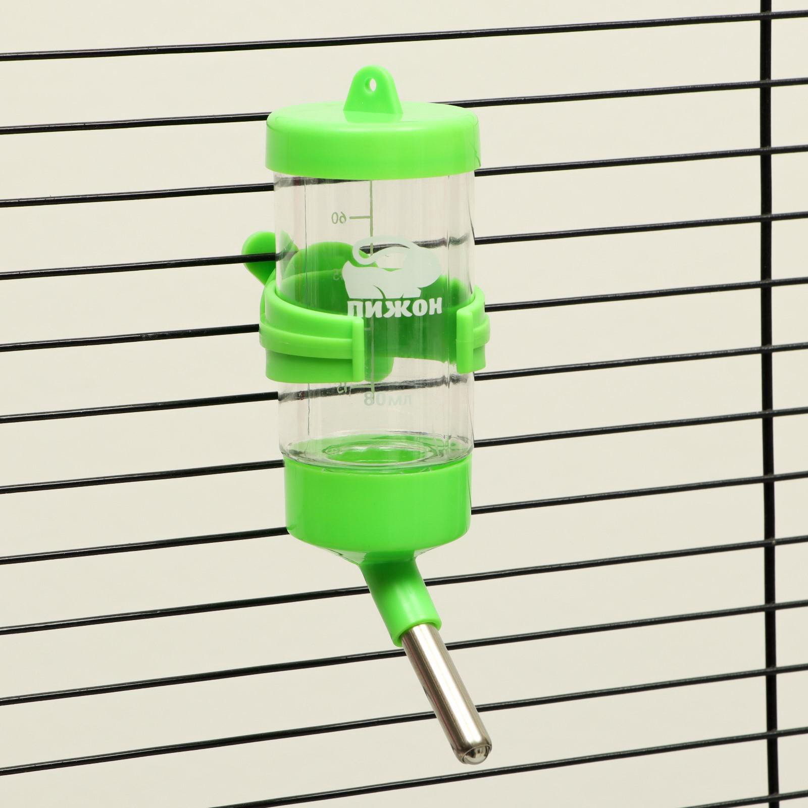 Поилка для грызунов 80 мл, зелёная, 4.5x7x12 см., Пижон, Китай