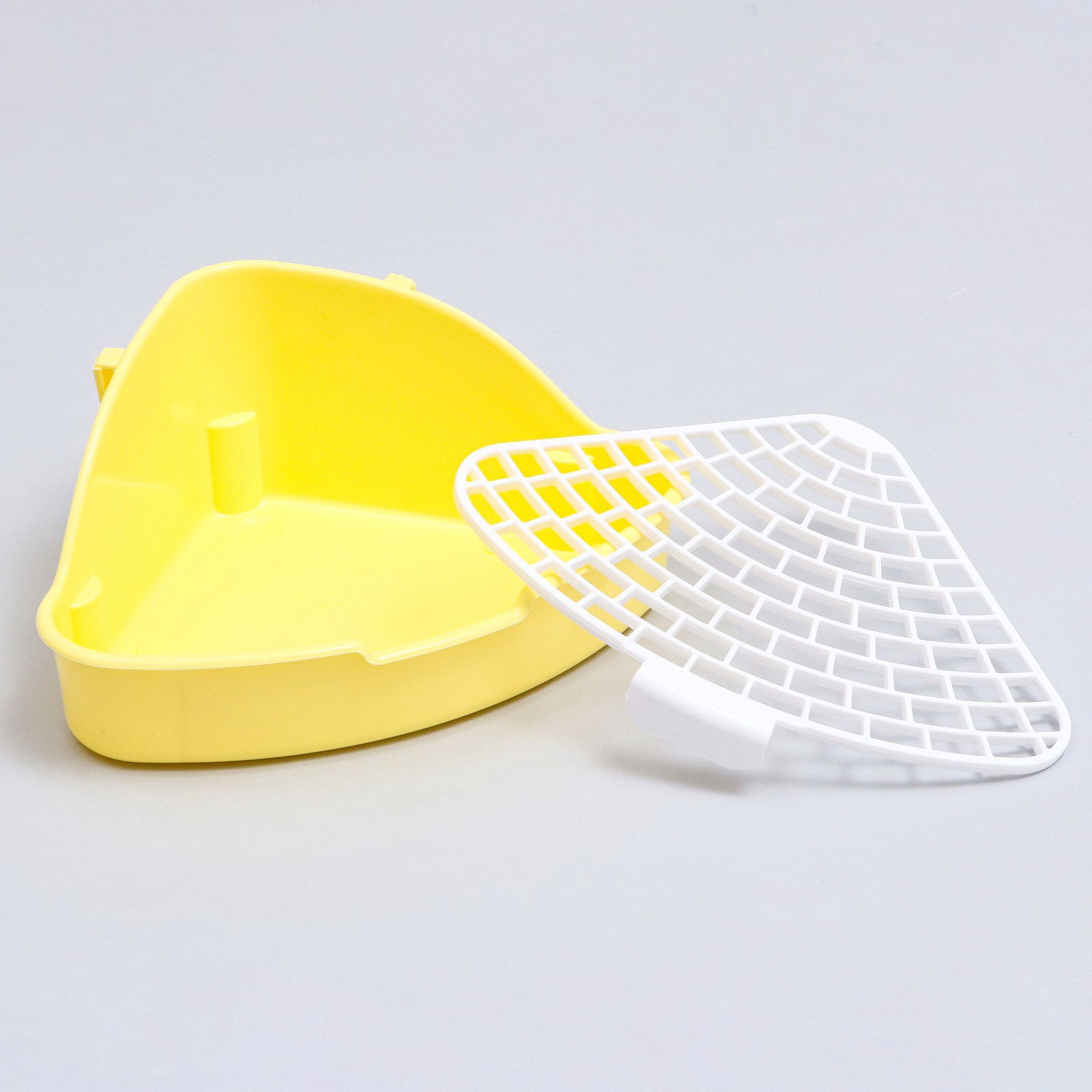Туалет для кроликов и хорьков 24x18x11 см, угловой, пластик, жёлтый, 18x24x11 см., Пижон, Китай
