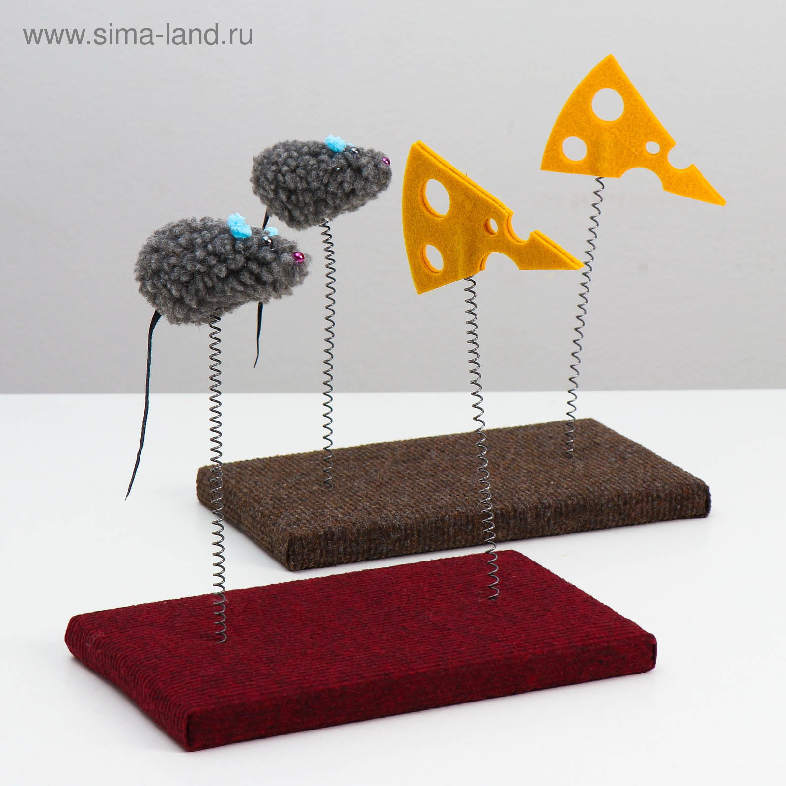 Игрушка для кошек с дразнилками "Мышь и сыр", 26 x 14.5 x 22 см микс цветов, Пижон, Россия