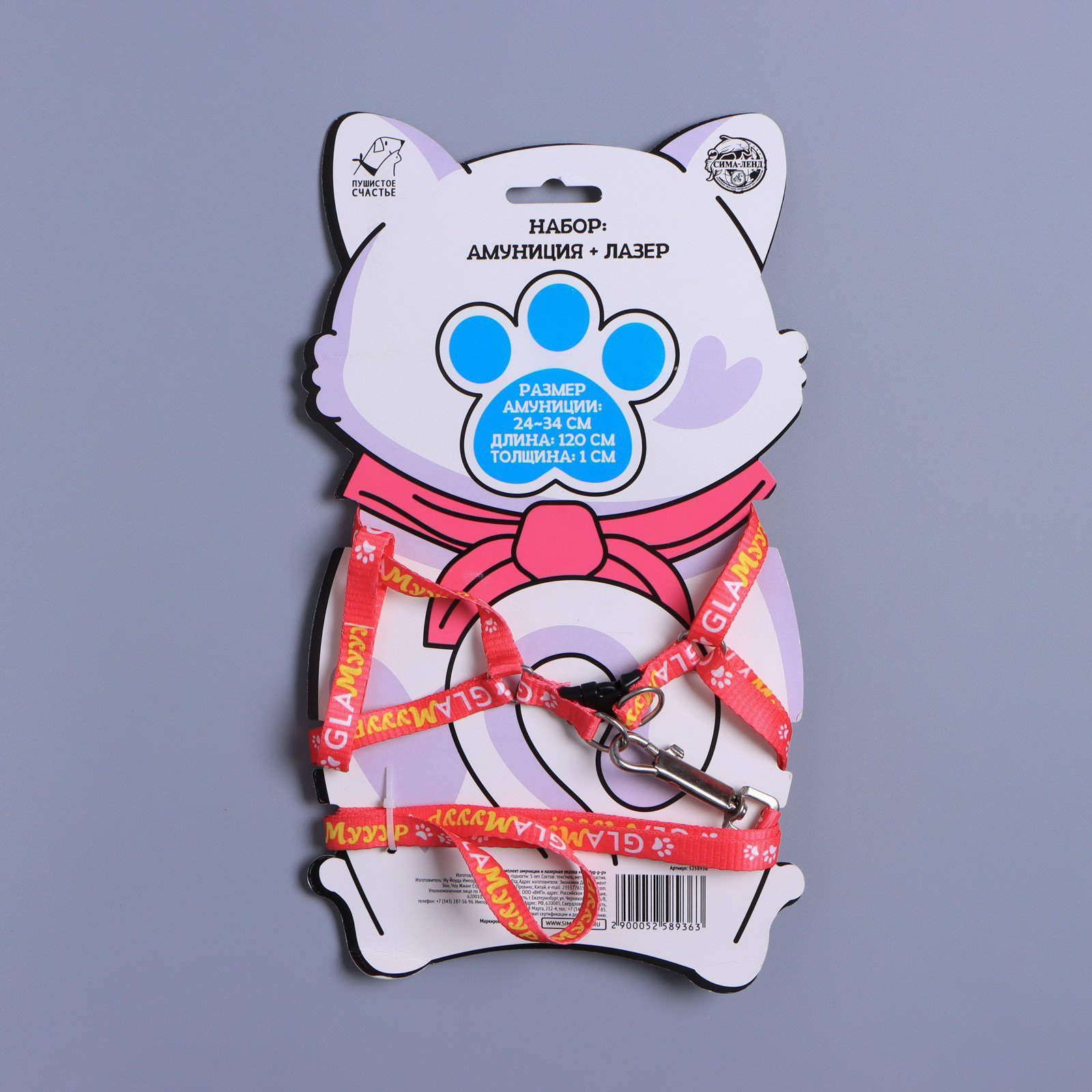 Шлейка для кошки с лазером "GlaМуррр", 15.8x28x1.5 см., Пушистое счастье, Китай