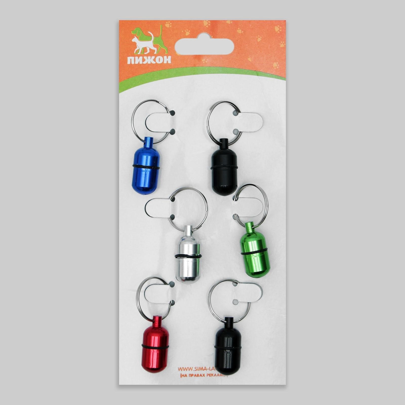 Адресник-капсула под записку, 2.2x1.3 см, фасовка 6 шт., микс, 1.3x1.3x2.9 см., Пижон, Китай
