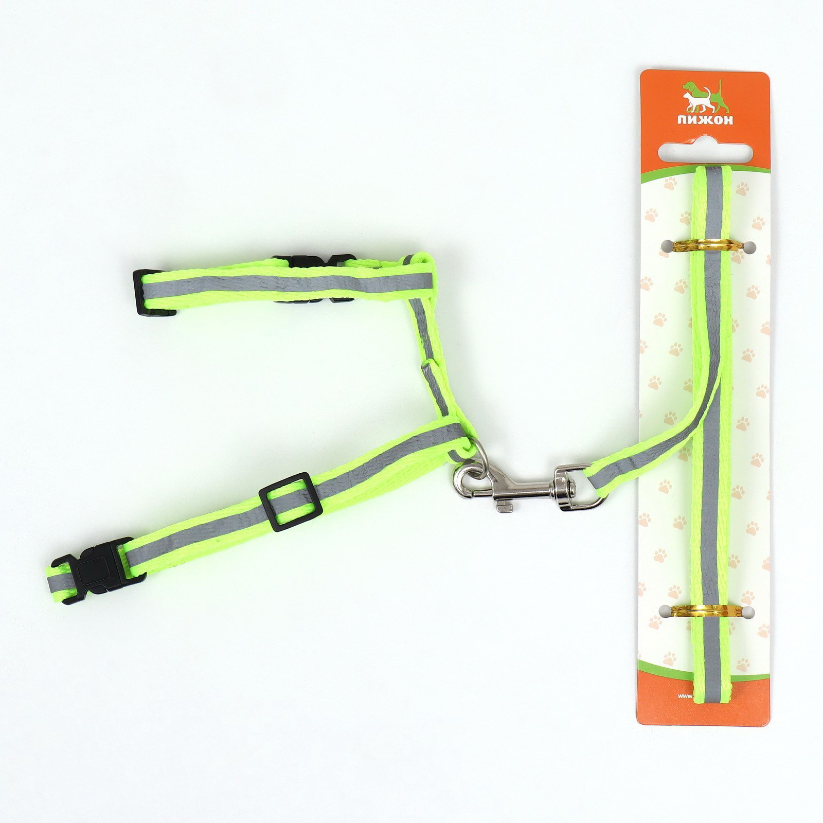 Комплект для кошек светоотражающий, ширина 1 см, шлейка 21-35 см, поводок 120 см, зелёный, 1 см., Пижон, Китай
