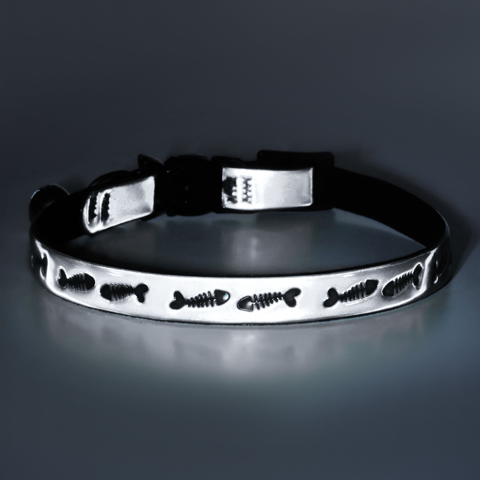Ошейник кошачий "Рыбки", со светоотражающим покрытием, 30x1 см, серебристый, Пижон, Китай