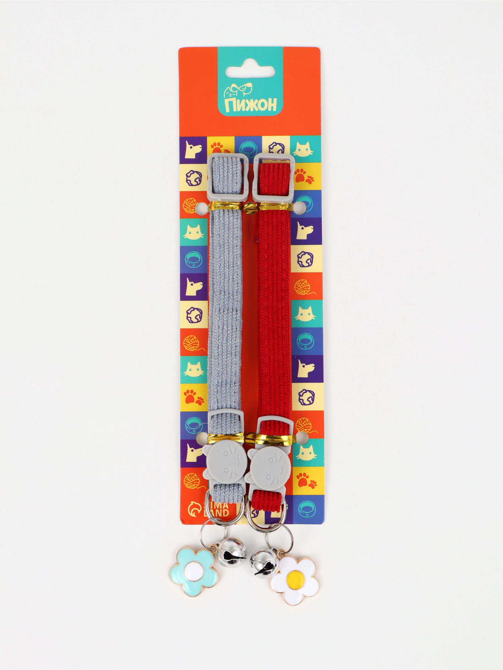 Набор ошейников кошачих, серый/красный, Пижон, Китай