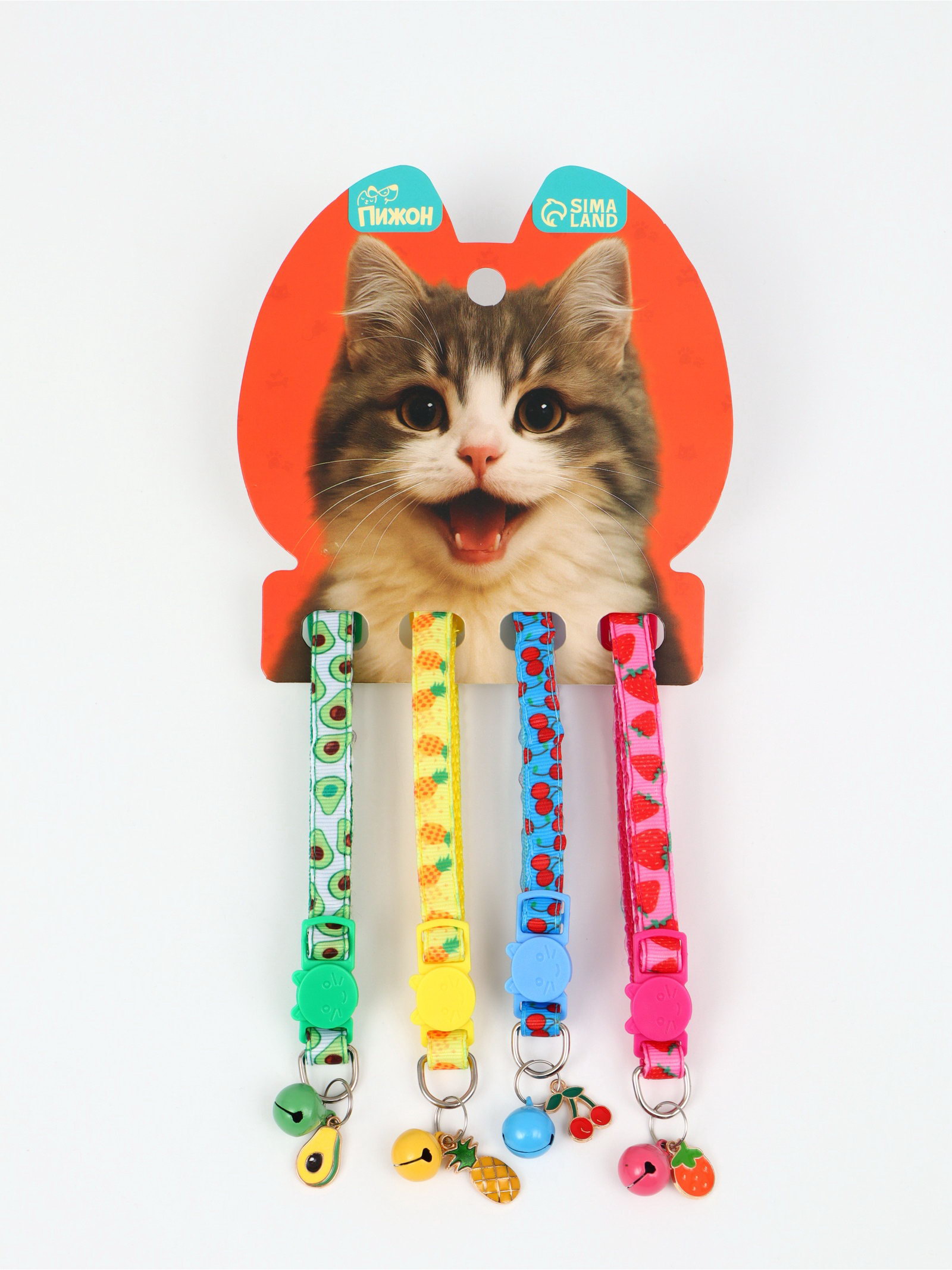 Набор ошейников для кошки "Фрукты", 19-32 x 1 см, 4 шт, Пижон, Китай