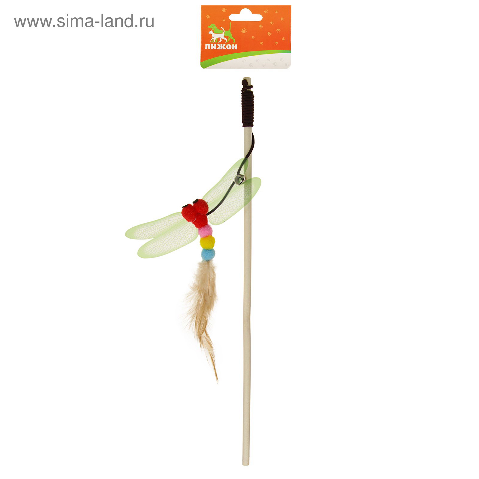 Дразнилка-удочка "Стрекоза", деревянная палочка 40 см, микс цветов, 14x40x12 см., Пижон, Китай