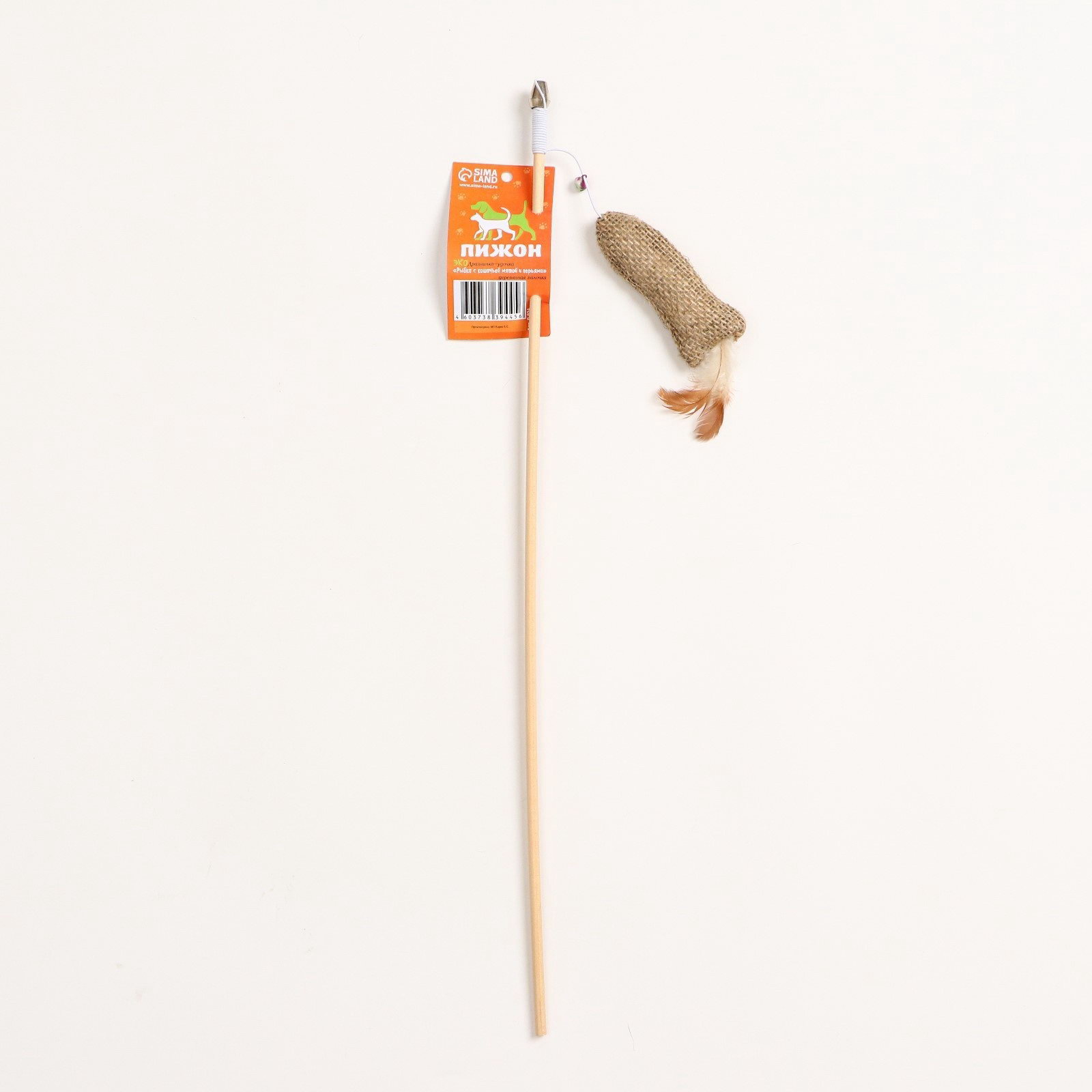 Дразнилка - удочка из эко-материалов "Рыбка с кошачьей мятой и перьями" на дерев. палочке, Пижон, Россия
