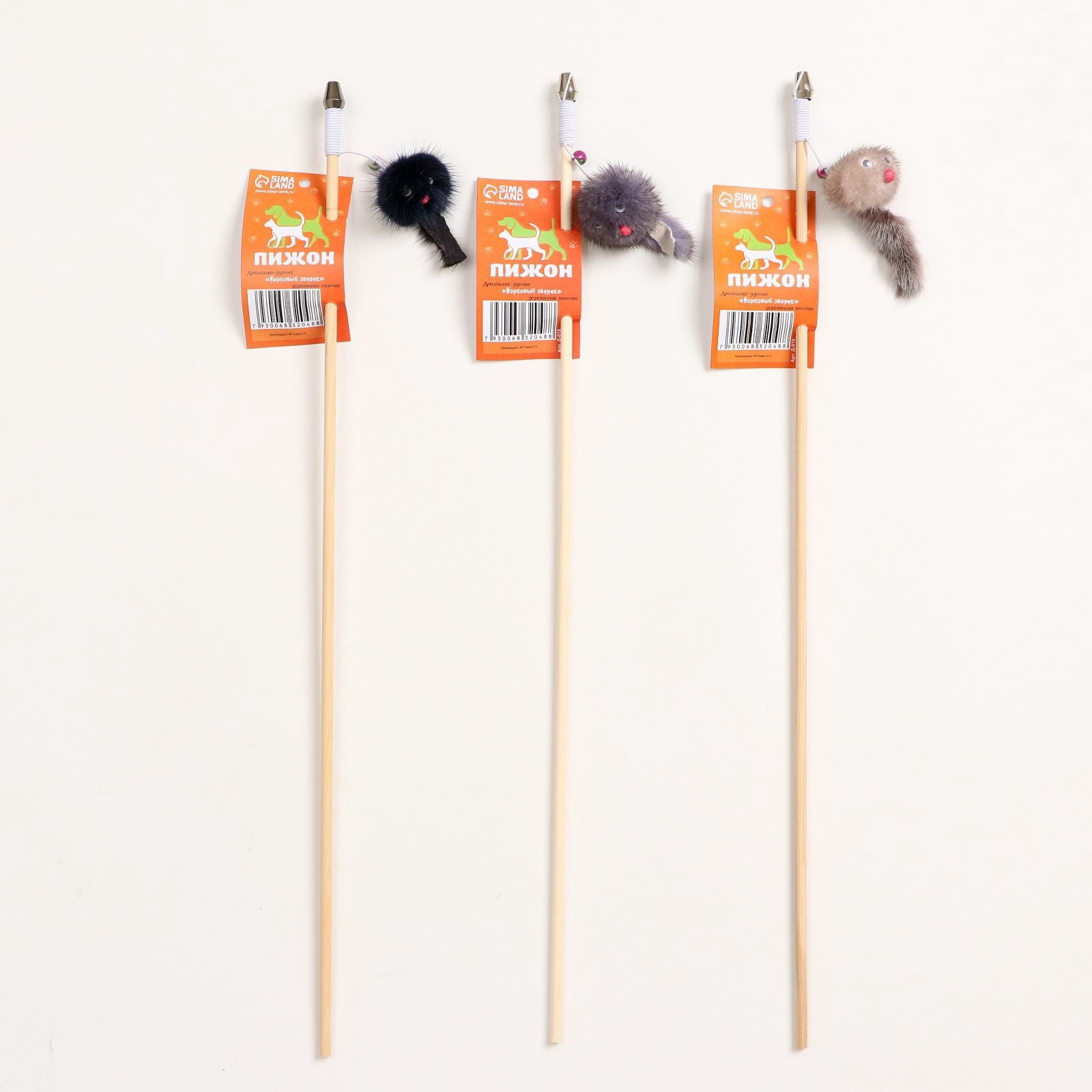 Дразнилка - удочка "Норковый зверек" на деревянной палочке, микс цветов, Пижон, Россия