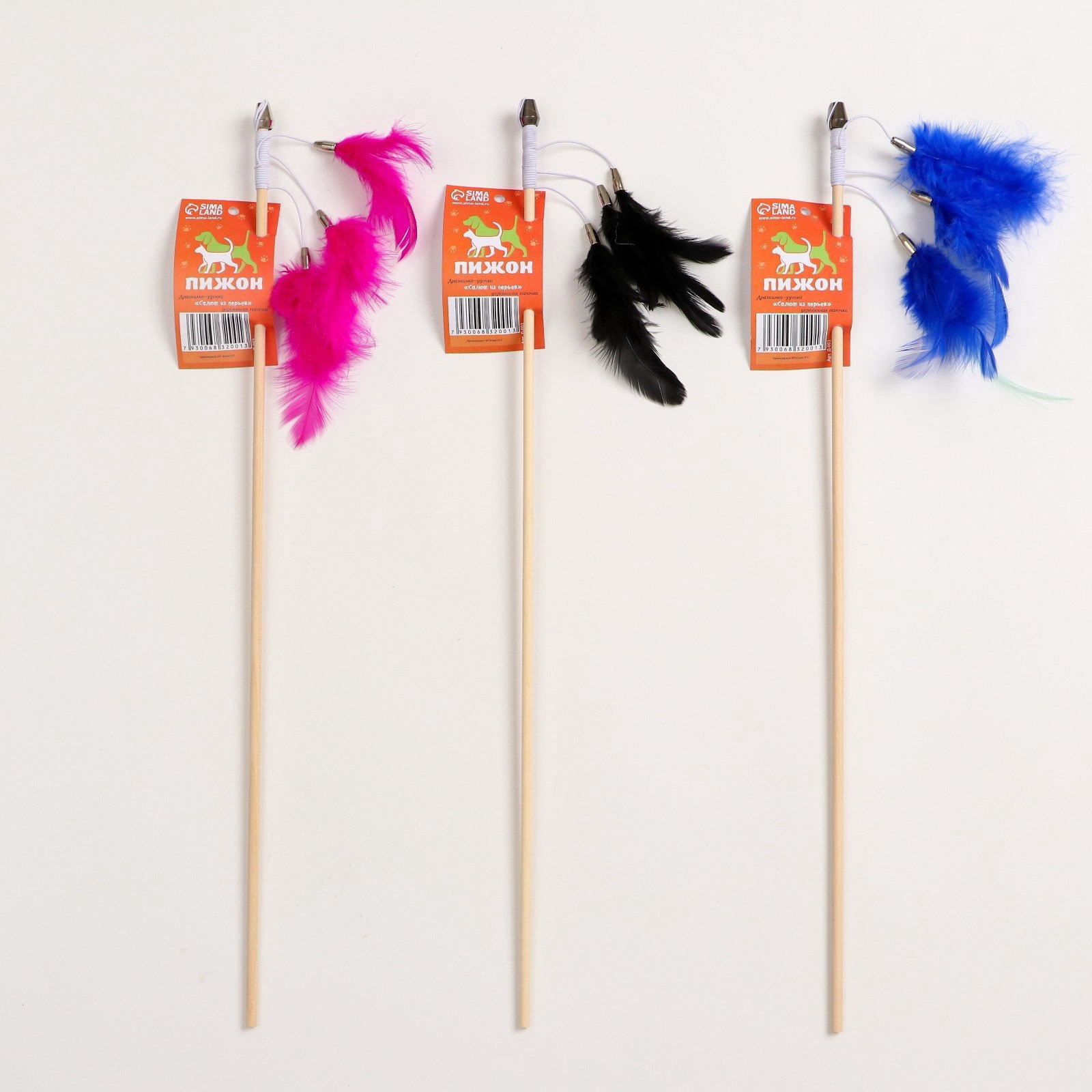 Дразнилка - удочка "Салют из перьев" на деревянной палочке, микс цветов, Пижон, Россия