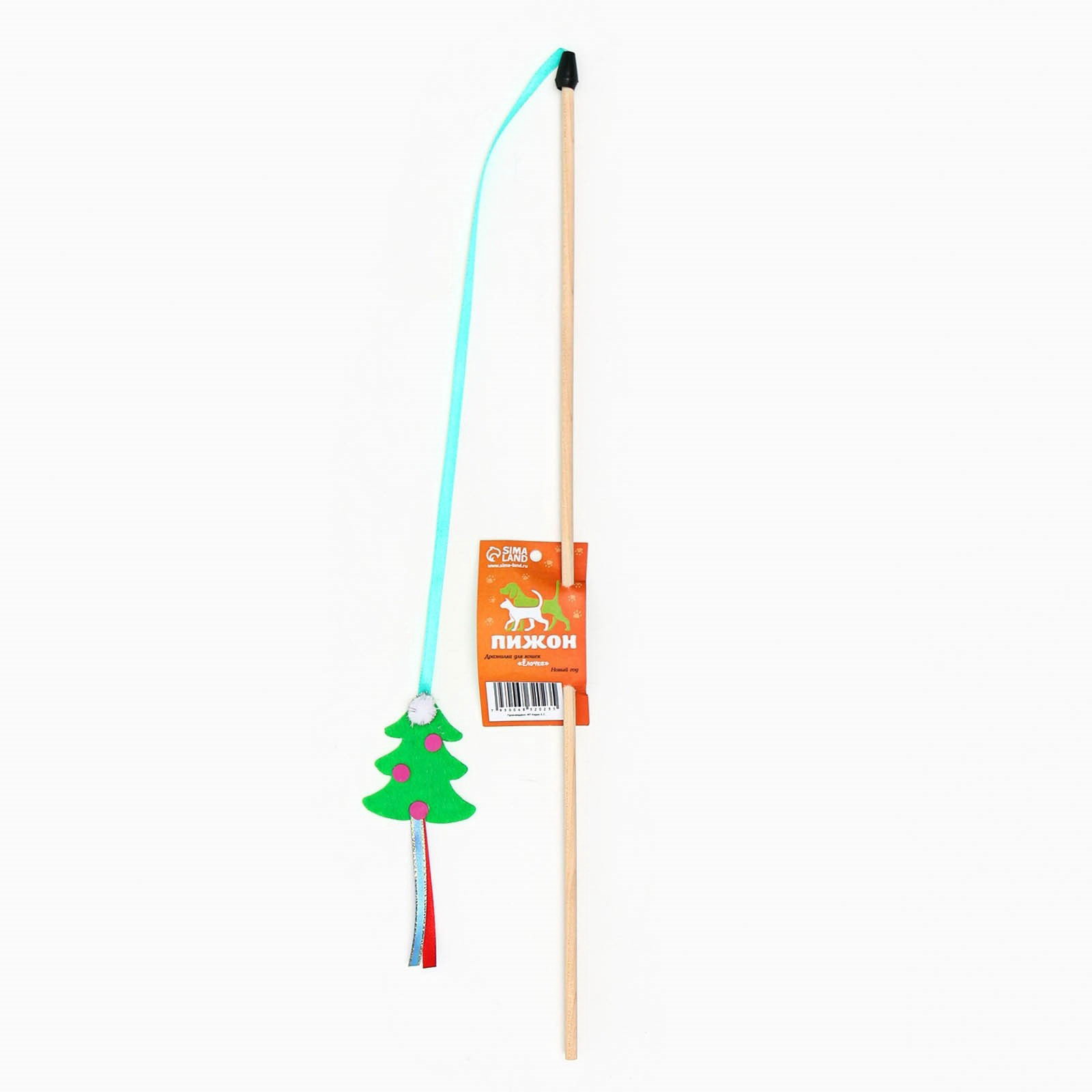 Дразнилка-удочка для кошек "Ёлочка", на деревянной палочке, зелёная, Пижон, Россия