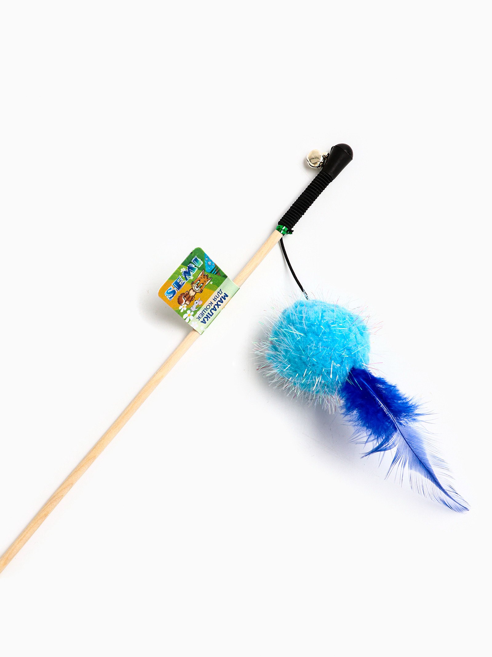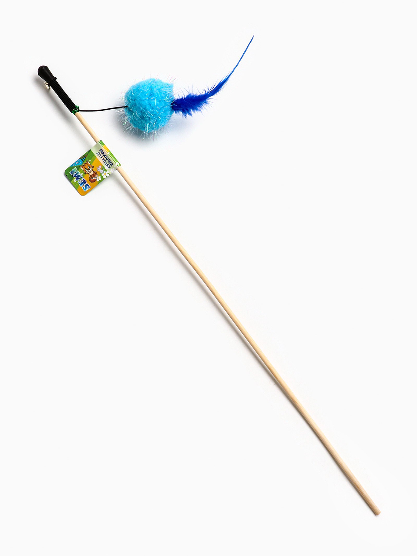 Дразнилка - удочка "Мячик с перьями". на деревянной палочке, цвет МИКС, Россия