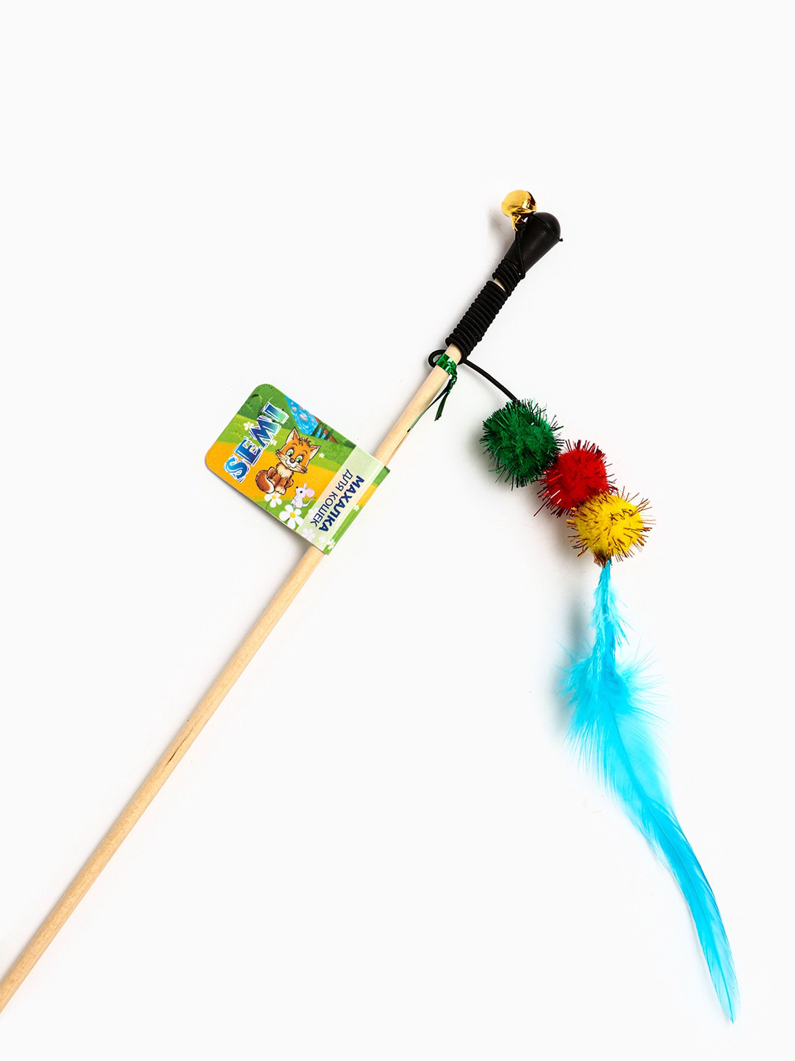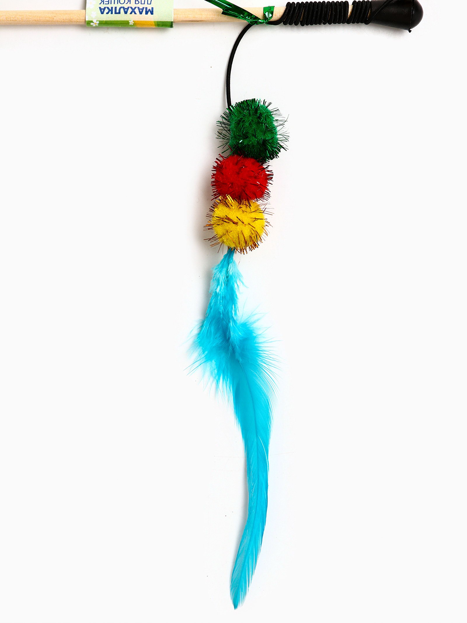 Дразнилка - удочка "Тройной мячик с перьями", на деревянной палочке, цвет МИКС, Россия