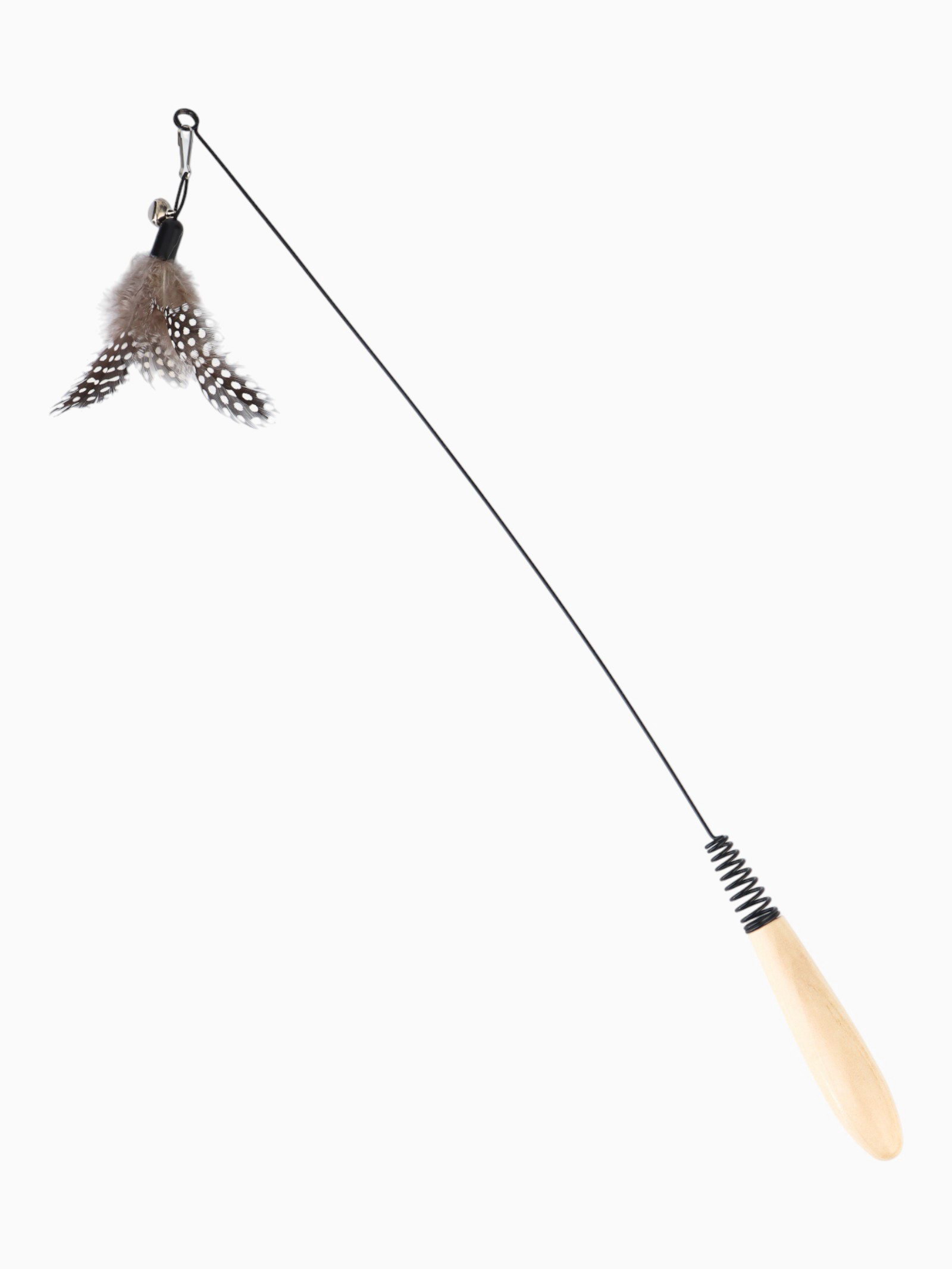 Размер упаковки: 6 x 2.5 x 49 см. tnved: 6701000000 Вид: Удочка Особенности: С перьями Материал ручки: Дерево Дразнилка "Перо" длиной 39 см оснащена натуральными перьями на тонкой верёвке и ручкой из дерева. Простая, но эффективная игрушка для активных игр с кошкой будь то котёнок или взрослый питомец. Особенности:
