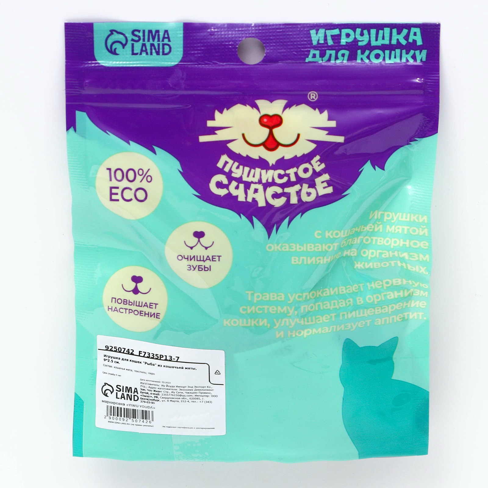 Игрушка для кошек "Рыба" из кошачьей мяты, 8 x 2.5 см, 4x9x3 см., Пушистое счастье, Китай