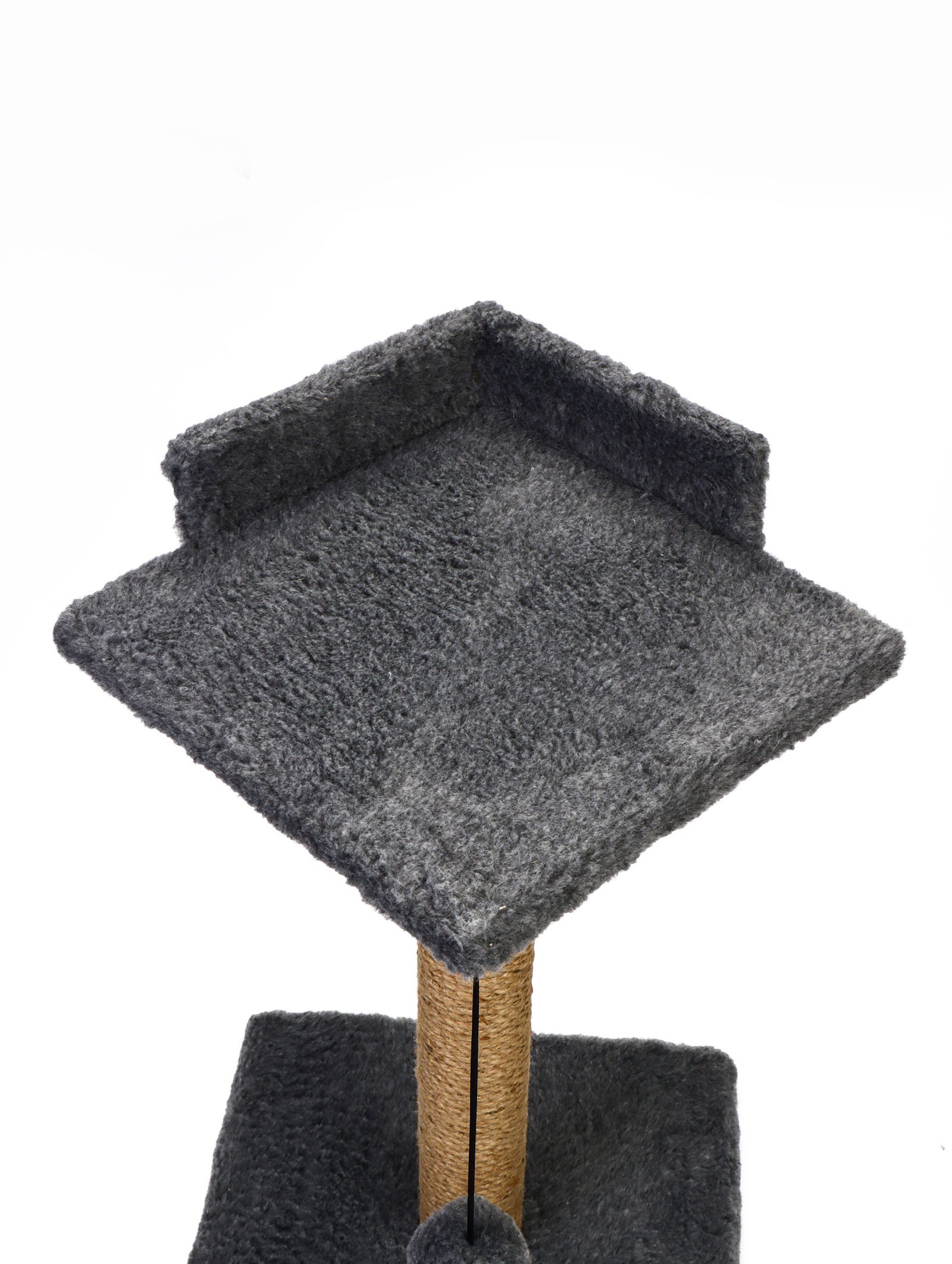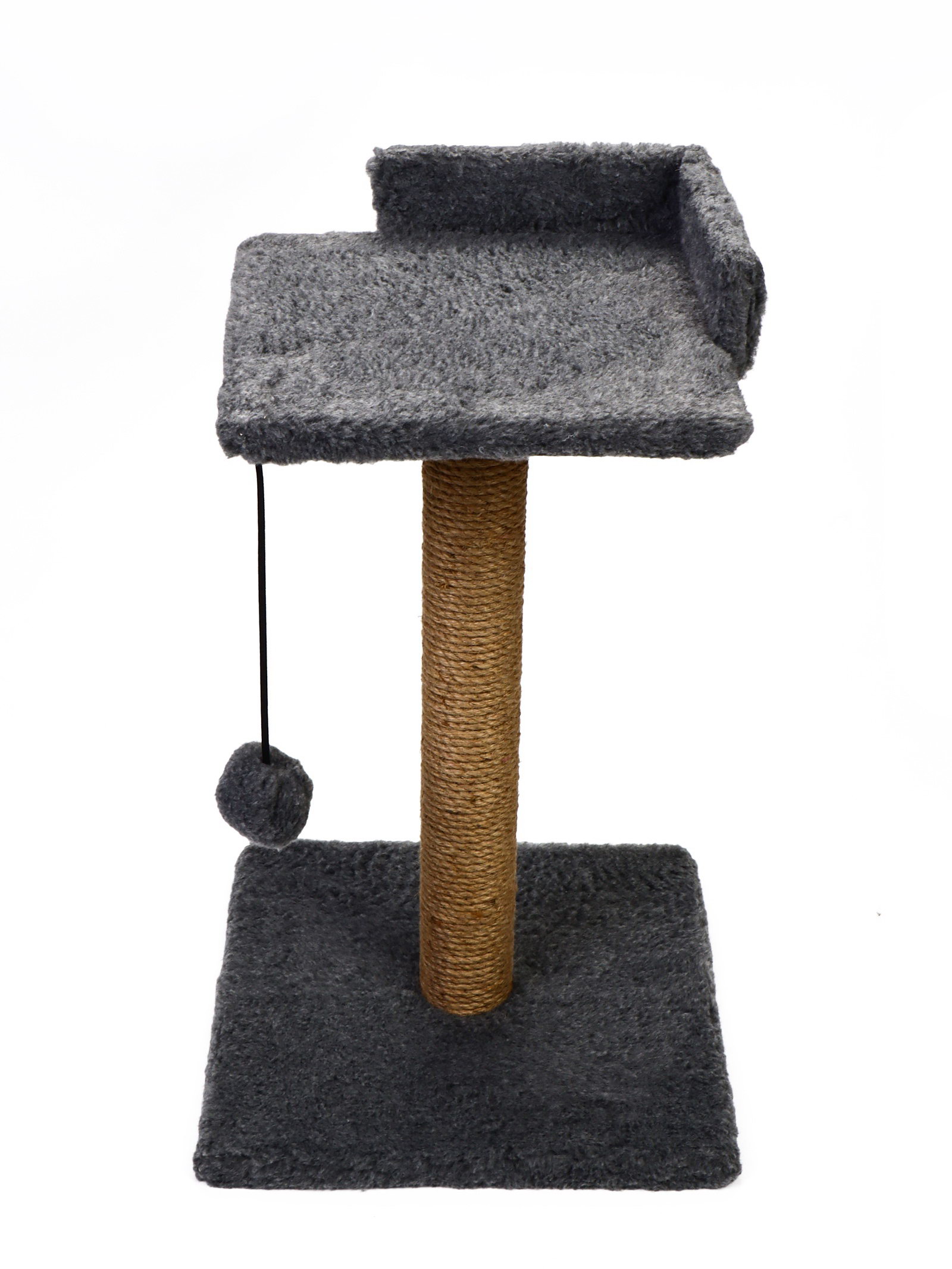 Когтеточка - столбик "Релакс", 60x35x35 см, с полкой - лежанкой и игрушкой, джут, серая, PETMIL, Россия