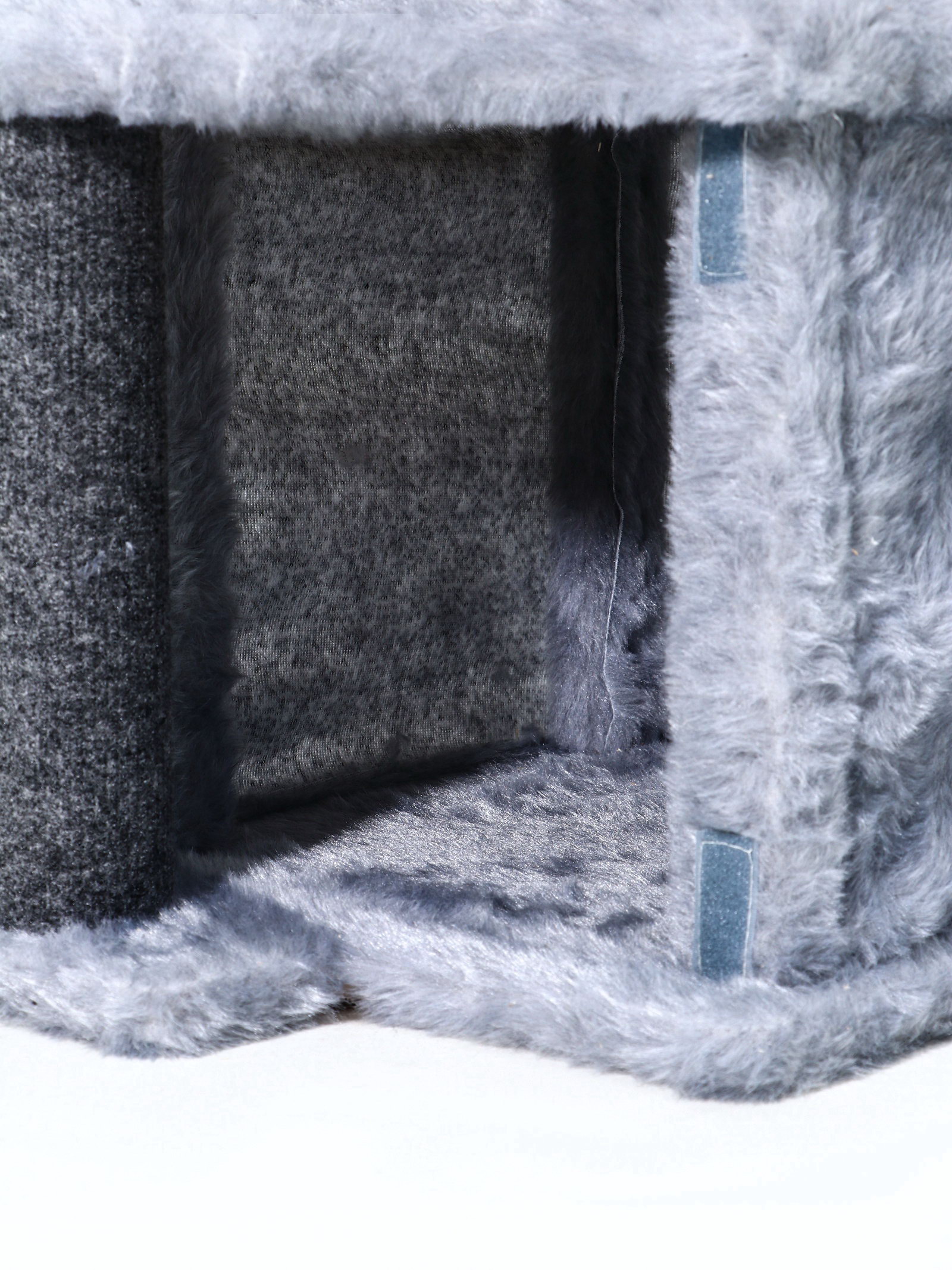 Домик для кошек, 33x42x63 см, с когтеточкой, квадратный, 3 уровня, ковролин, серый, Пижон, Россия