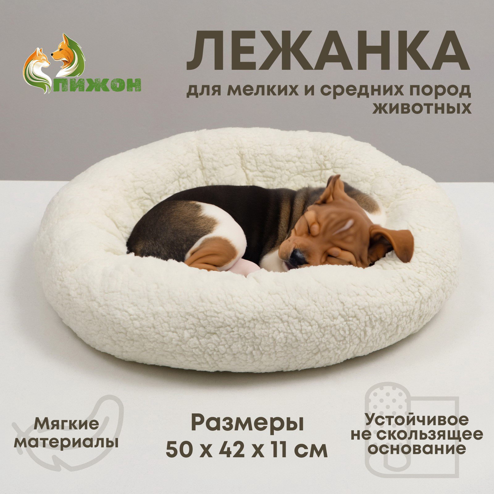 Лежанка для собак и кошек "Уют", мягкий мех, 50x42x11 см, молочная, 42x50x11 см., Пижон, Китай