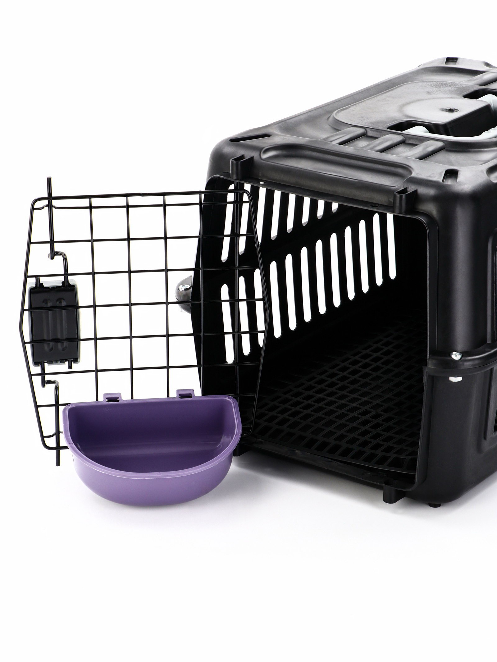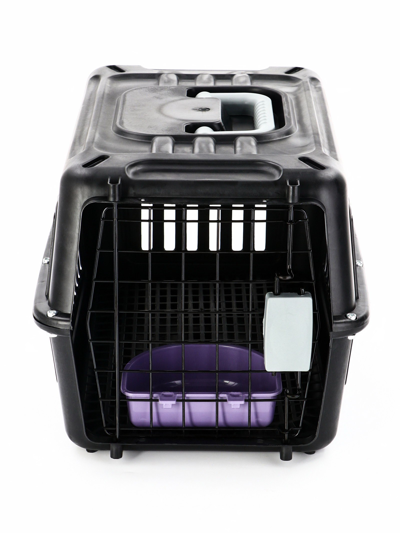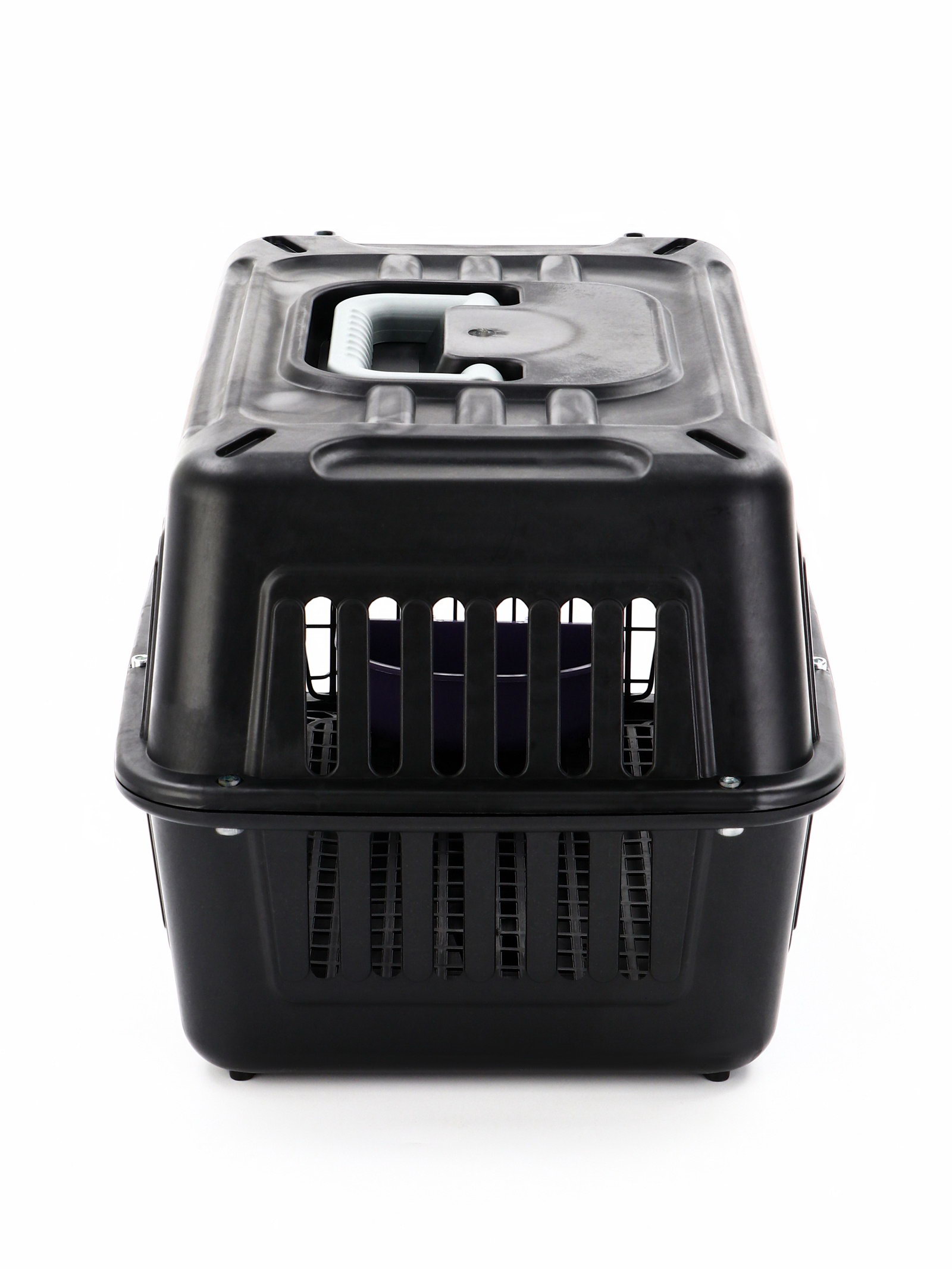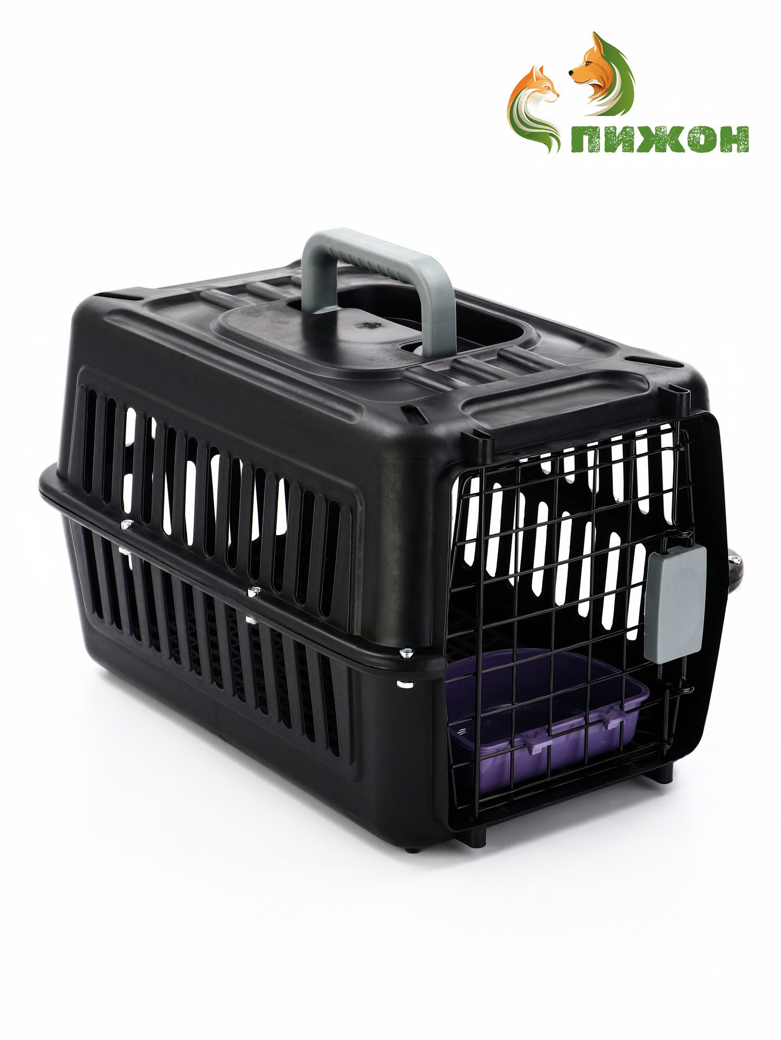 Переноска для животных с сеткой и миской пластиковая 44x31x27 см, чёрная, 31x44x27 см., Пижон, Китай