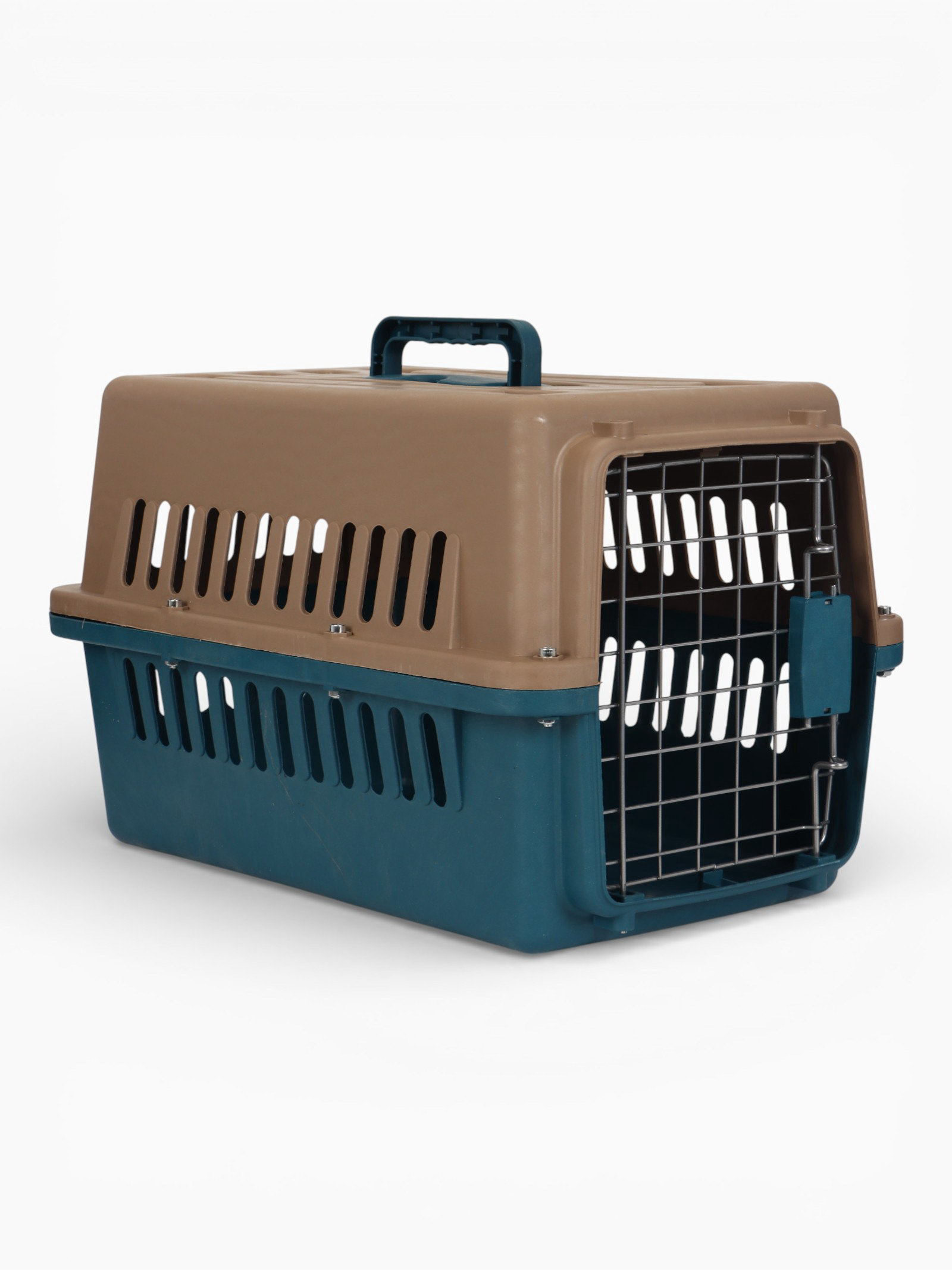 Переноска для животных, 49x31x31 см, с металлической дверью, пластик, коричневая, синяя, 31x49x31 см., Пижон, Китай