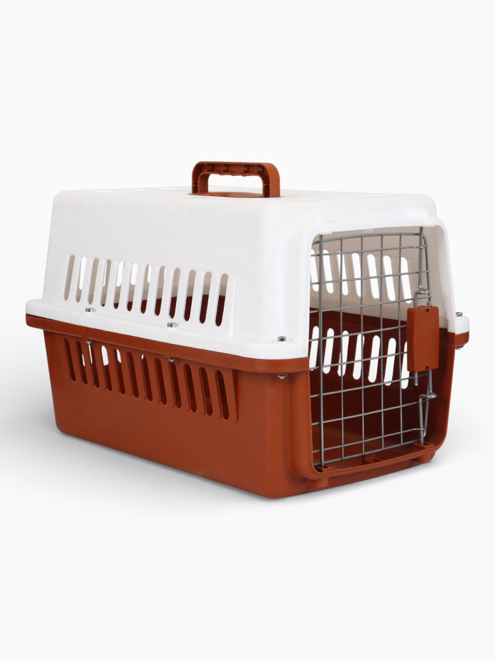 Переноска для животных, 49x31x31 см, с металлической дверью, пластик, белая, коричневая, 31x49x31 см., Пижон, Китай