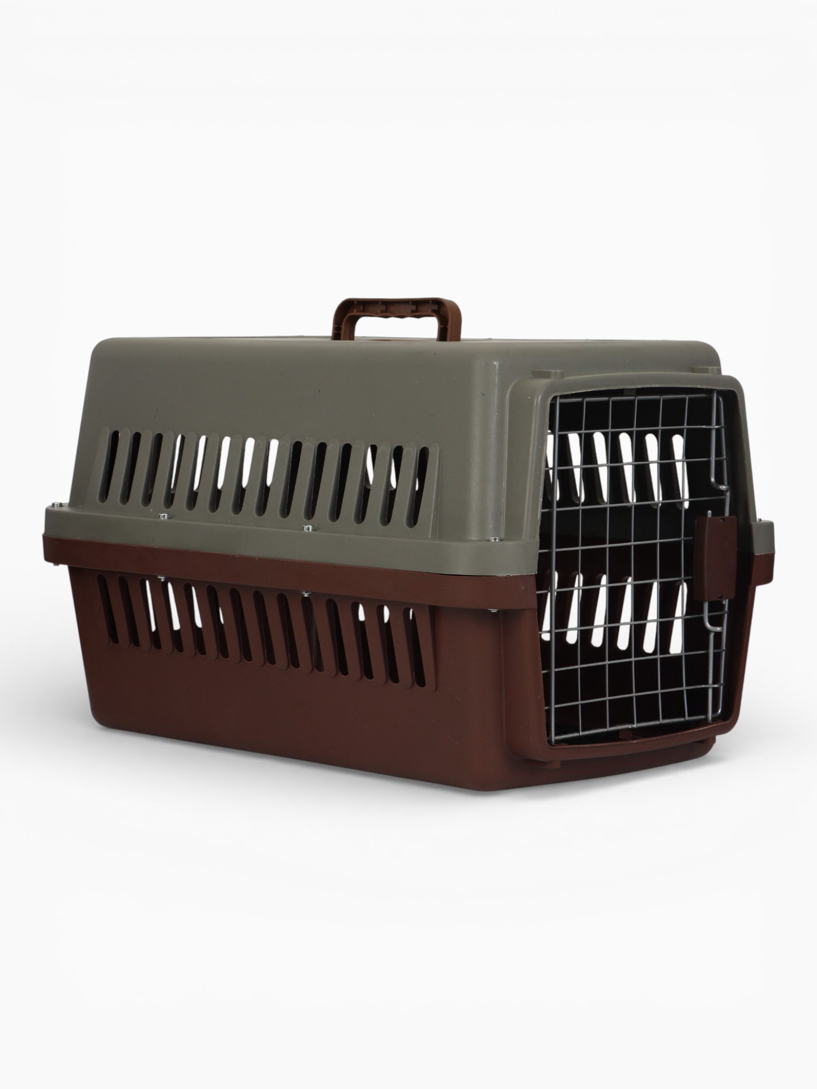 Переноска для животных, 59x36x35 см, с поддоном, с металлической дверью, цвет кофейный, серый, 36x59x35 см., Пижон, Китай