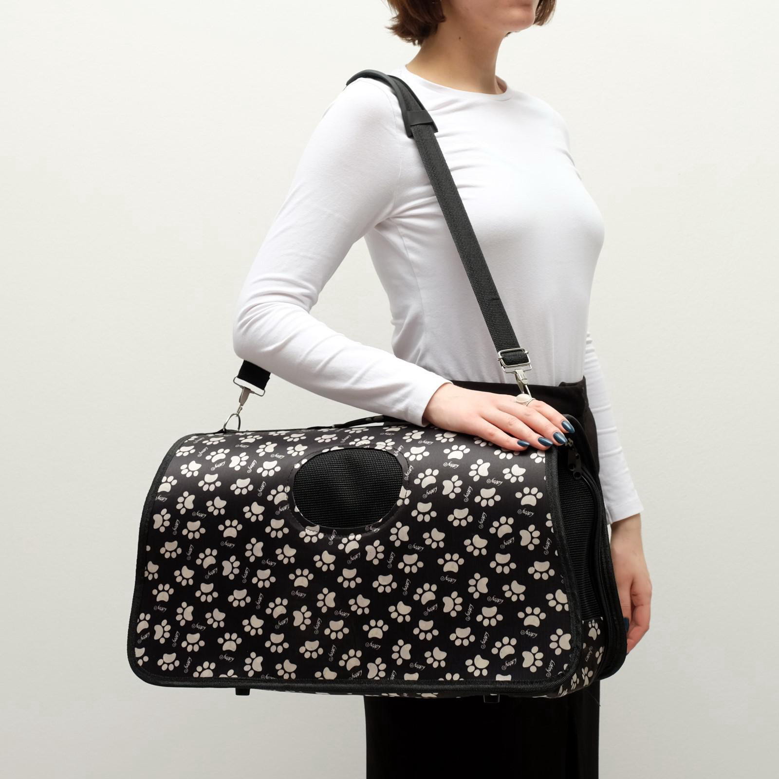 Сумка-переноска каркасная "Лапки Happy", размер L, 53x21x29 см, чёрная, 21x53x29 см., Пижон, Китай