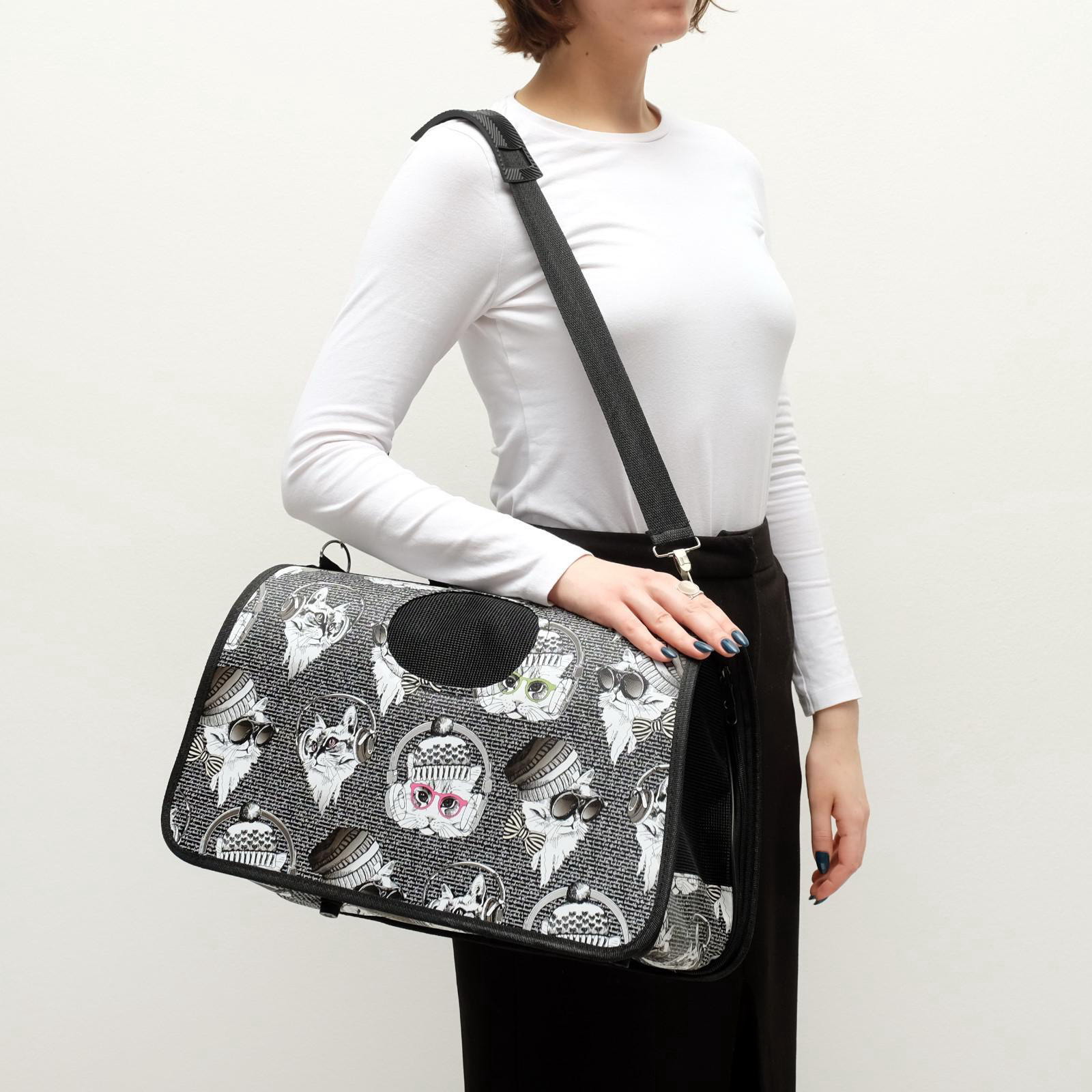 Сумка - переноска для животных "Зимние коты", размер M, 40x21x27 см, 21x45x27 см., Пижон, Китай