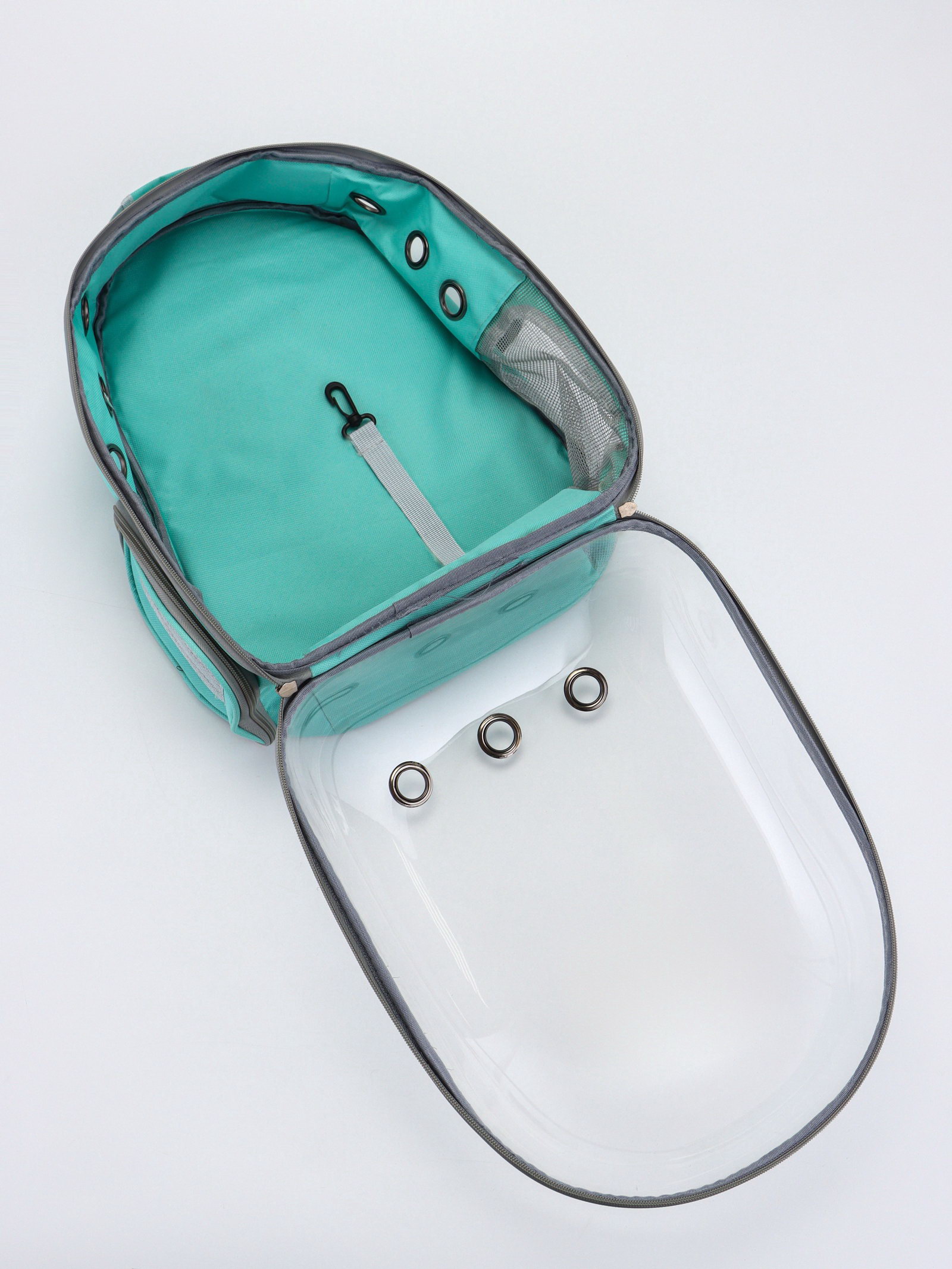 Рюкзак для переноски животных, 31x28x42 см, прозрачный, бирюзовый, 28x31x42 см., Пижон, Китай