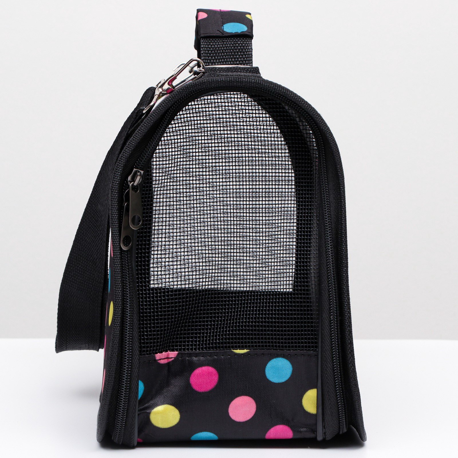 Сумка - переноска для животных "Горошек", чёрная, размер S, 37.5x17x22 см, 17x37.5x22 см., Пижон, Китай