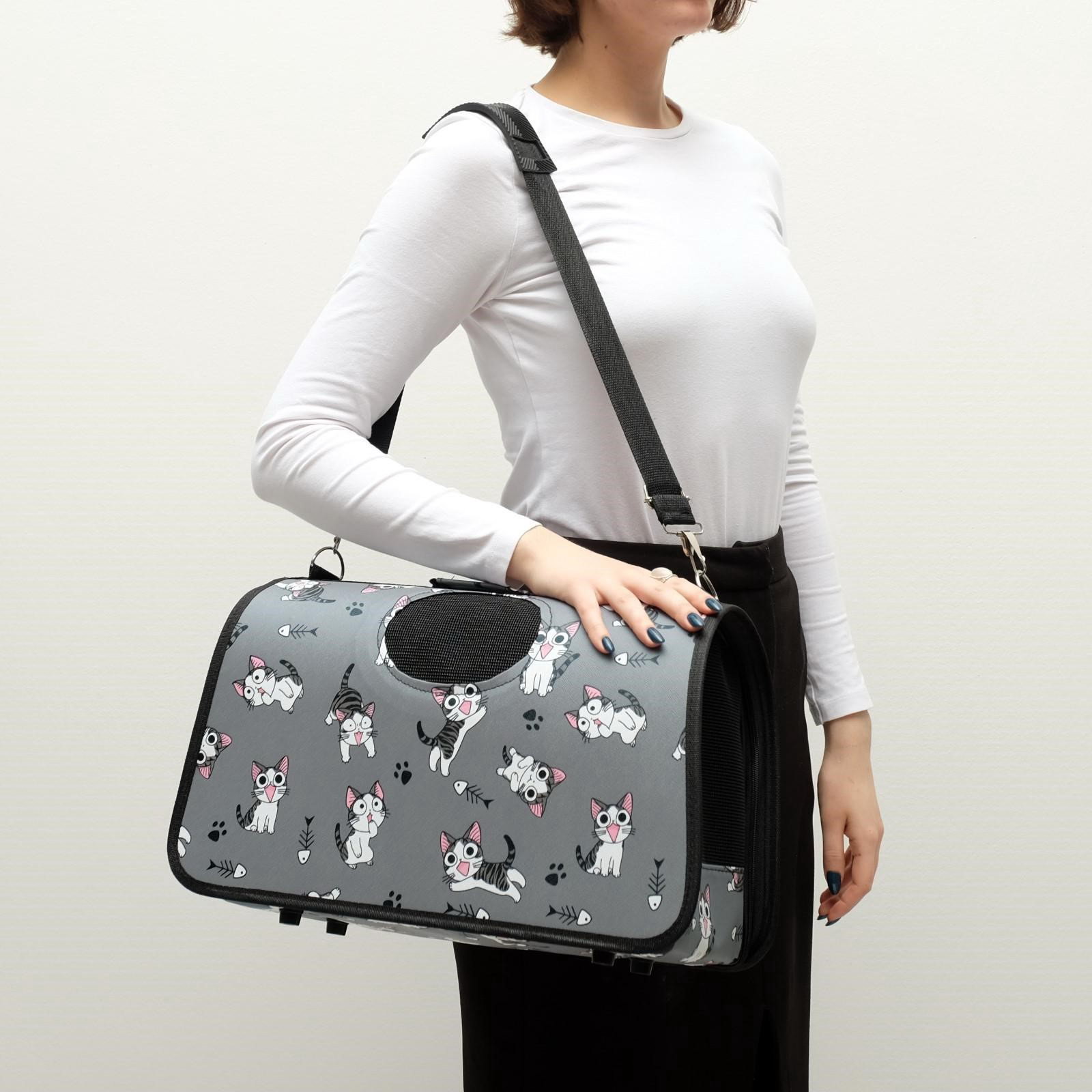Сумка-переноска каркасная "Играющие котики", размер S, 37.5x17x22 см, серая, 17x37.5x22 см., Пижон, Китай