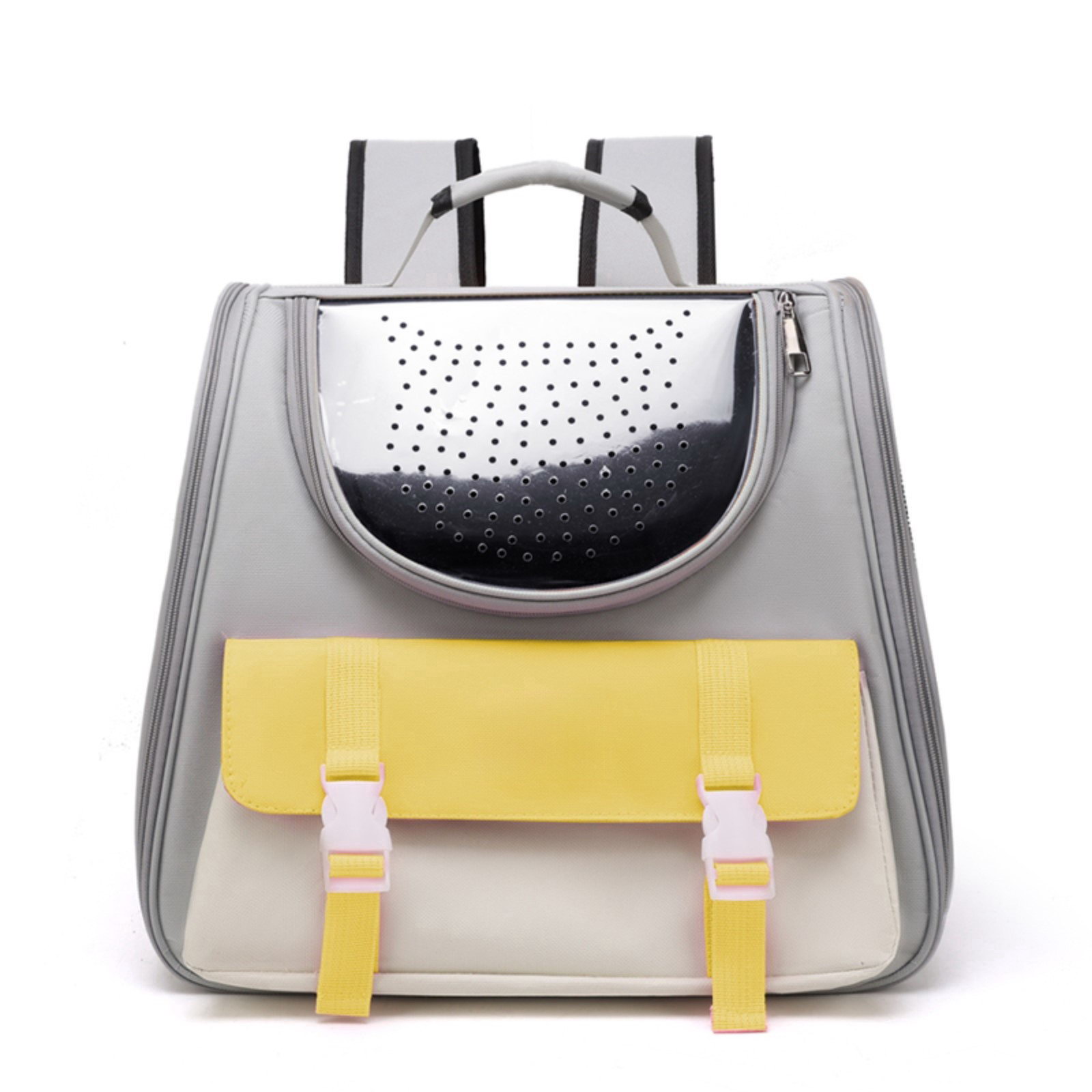 Рюкзак-переноска для кошек и собак, сетка с кошкой, оксфорд+ПВХ37x37x25 см, серый/жёлтый, Пижон, Китай