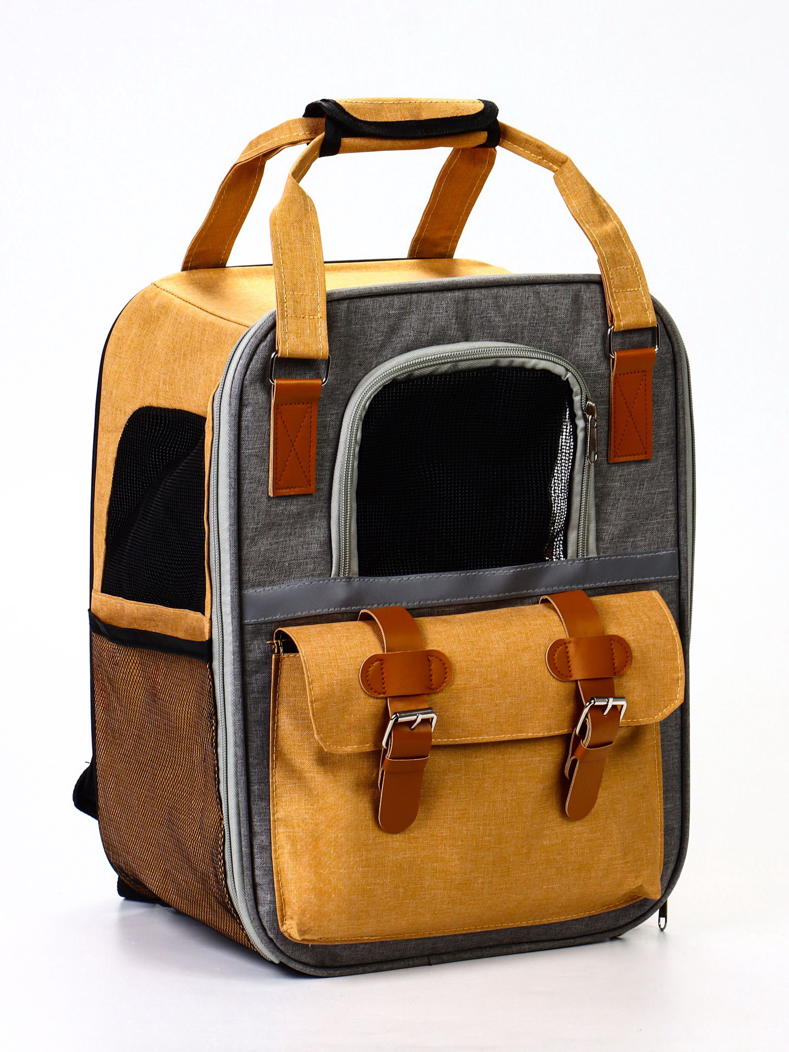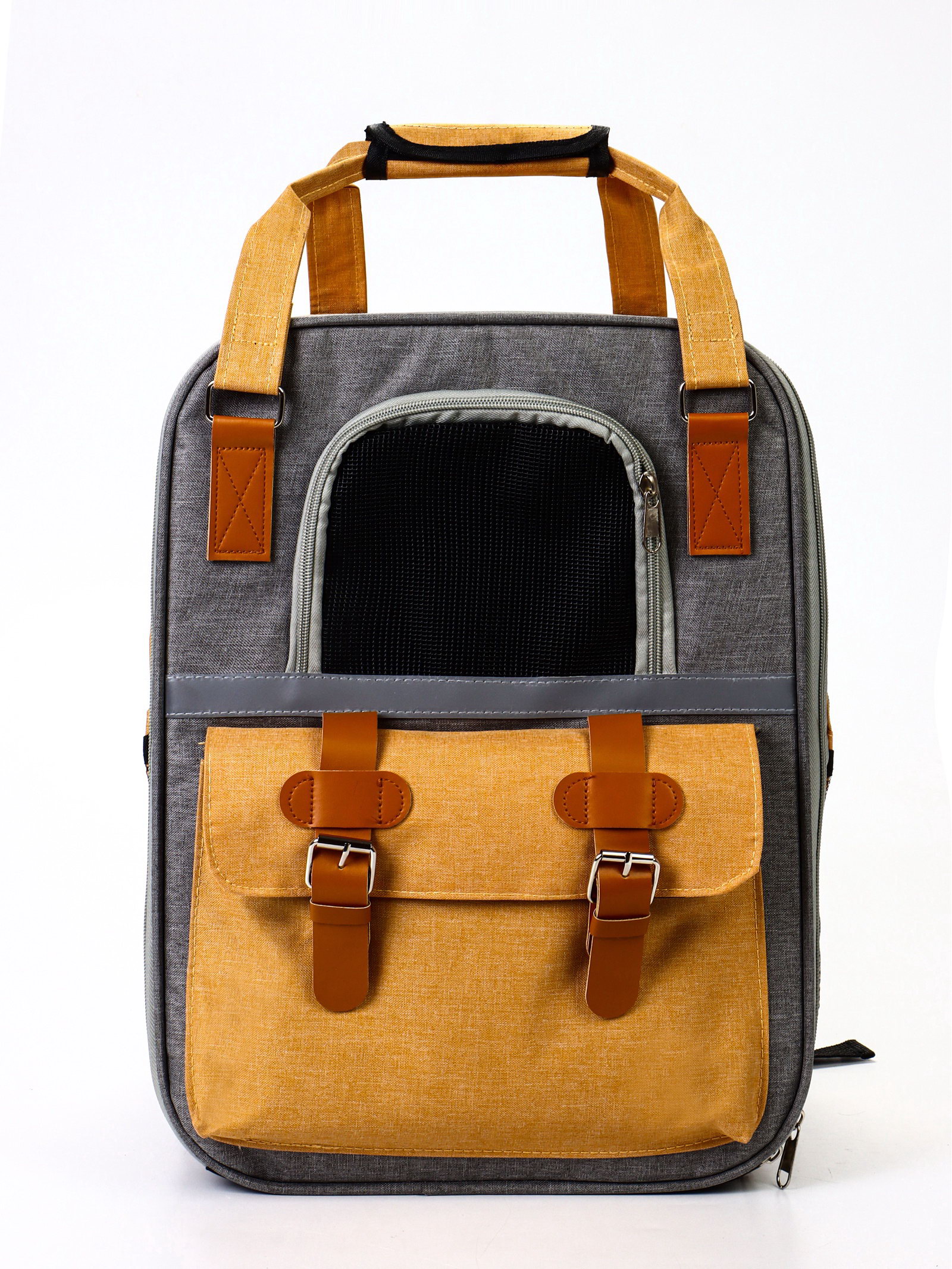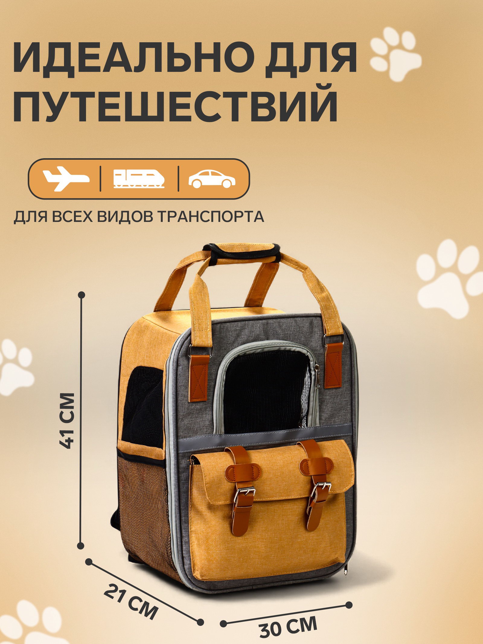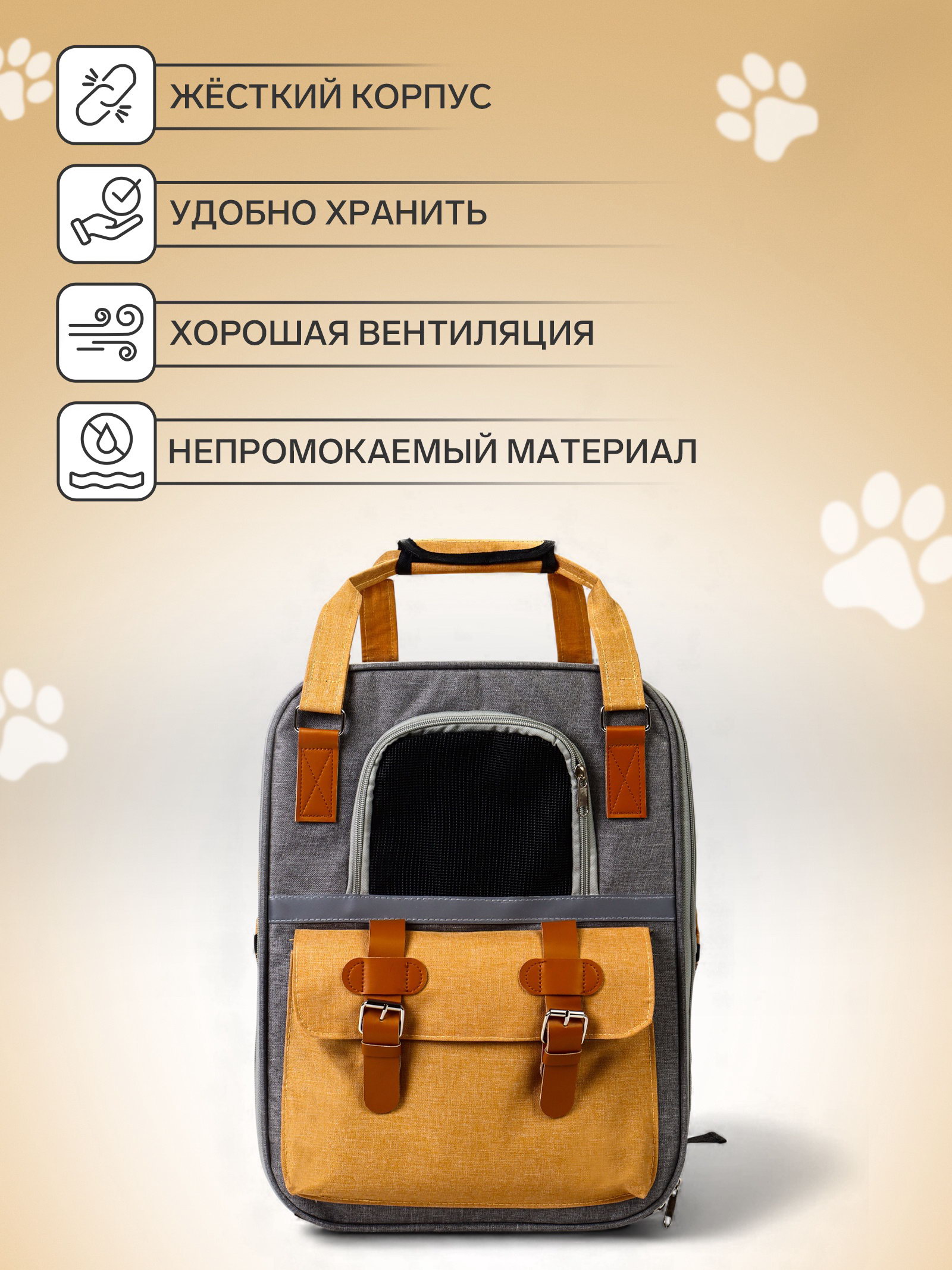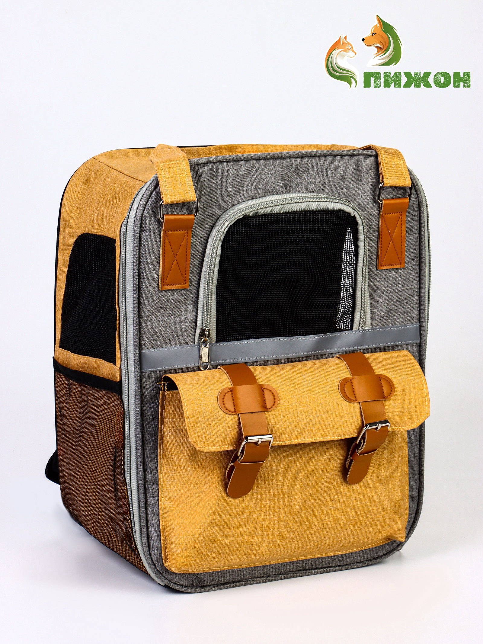Рюкзак-переноска для кошек и собак, 30x21x41 см, серый, жёлтый, Пижон, Китай